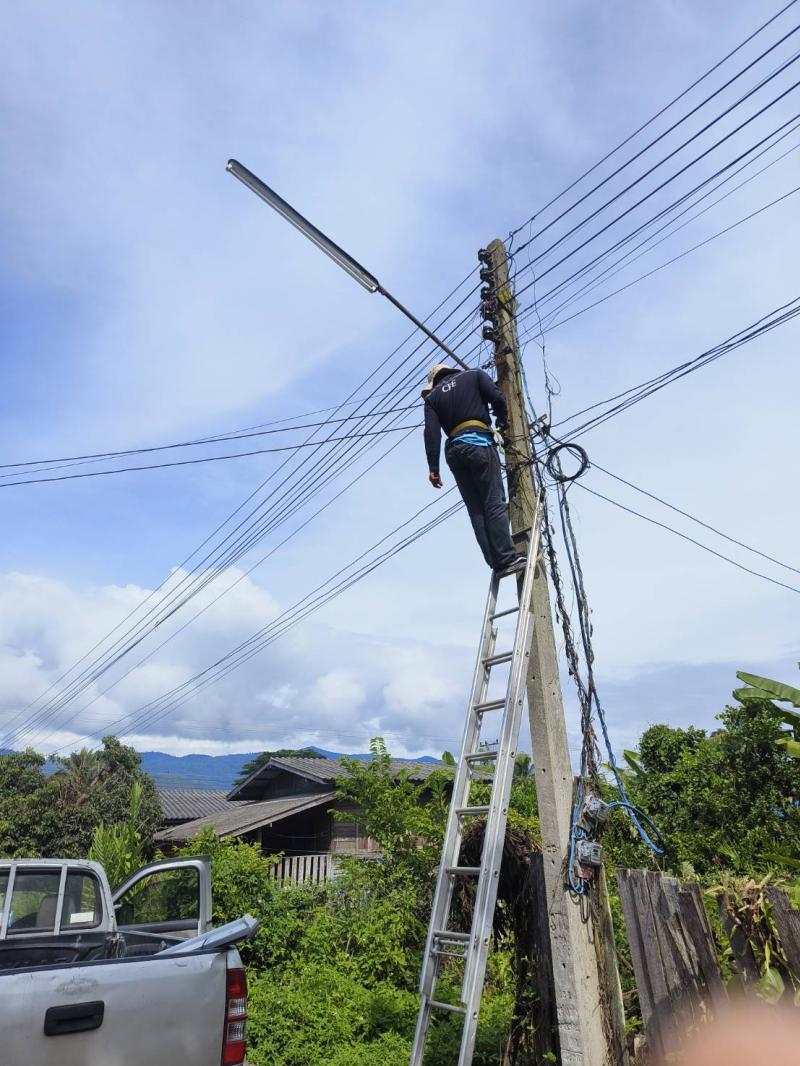ลงพื้นที่ทำการซ่อมแซมไฟกิ่งสาธารณะ บ้านแม่กองวะ หมู่ที่ 4 ตำบลแม่ลาน อำเภอลี้ จังหวัดลำพูน