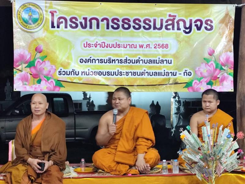 วันที่ 25 กรกฎาคม 2568 องค์การบริหารส่วนตำบลแม่ลาน นำโดย นายโสภณ มีมัง นายกองค์การบริหารส่วนตำบลแม่ลาน พร้อมด้วยคณะผู้บริหาร สมาชิกสภาองค์การบริหารส่วนตำบลแม่ลาน ข้าราชการ พนักงาน และเจ้าหน้าที่องค์การบริหารส่วนตำบลแม่ลาน ร่วมกับกำนันผู้ใหญ่บ้าน ประชาชนตำบลแม่ลาน-ตำบลก้อ และหน่วยงานที่เกี่ยวข้อง เข้าร่วมฟังเทศน์ ธรรมสัญจร ตามโครงการธรรมสัญจร ประจำปีงบประมาณ พ.ศ. 2568 โดยองค์การบริหารส่วนตำบลแม่ลาน ร่วมกับ หน่วยอบรมประชาชนประจำตำบล (อ.ป.ต.) ตำบลแม่ลาน-ก้อ ณ วัดศิริชัยมงคล บ้านแม่กองวะ หมู่ที่ 4 ตำบลแม่ลาน อำเภอลี้ จังหวัดลำพูน __________________________________________ -ขอขอบคุณภาพข่าวจาก : เลขานุการนายกองค์การบริหารส่วนตำบลแม่ลาน และผู้ช่วยเจ้าพนักงานธุรการองค์การบริหารส่วนตำบลแม่ลาน -เเหล่งข่าว : องค์การบริหารส่วนตำบลแม่ลาน -ประชาสัมพันธ์ข่าว : งานประชาสัมพันธ์ สำนักปลัดองค์การบริหารส่วนตำบลแม่ลาน -เว็บไซต์ : https://www.maelan.go.th -Facebook : https://www.facebook.com/saomaelan.maelan.7?mibe