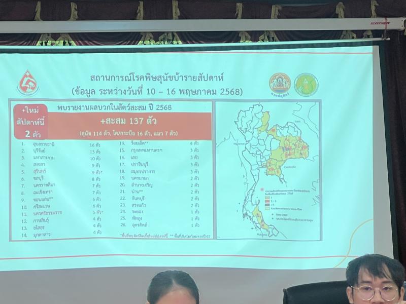 เข้าร่วมการอบรมแนวทางการดำเนินการประเมินพื้นที่ปลอดโรคพิษสุนัขบ้า ตามโครงการสร้างพื้นที่ปลอดโรคพิษสุนัขบ้าในระดับท้องถิ่นภายใต้โครงการสัตว์ปลอดโรค คนปลอดภัยจากโรคพิษสุนัขบ้า ตามพระปณิธานศาสตราจารย์ ดร. สมเด็จพระเจ้าน้องนางเธอ เจ้าฟ้าจุฬาภรณ์วลัยลักษณ์ อัครราชกุมารี กรมพระศรีสวางควัฒน วรขัตติยราชนารี ประจำปีงบประมาณ 2568