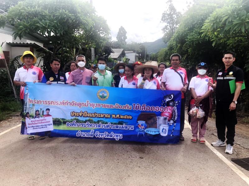 วันที่ 12 กรกฎาคม 2566 องค์การบริหารส่วนตำบลแม่ลาน นำโดย นายโสภณ มีมัง นายกองค์การบริหารส่วนตำบลแม่ลาน มอบหมายให้ นายสมสมัย ปองนาน ปลัดองค์การบริหารส่วนตำบลแม่ลาน นายประวิทย์ ล่าเพ็ง ผู้อํานวยการกองการศึกษาฯ และนายเอนก สีวิจี๋ ผู้ช่วยนักวิเคราะห์นโยบายและแผน ร่วมกับ รพ.สต.แม่ลาน ผู้นำชุมชนและอสม.บ้านหนองมะล้อ หมู่ที่ 2 ลงพื้นที่ทำลายแหล่งเพาะพันธุ์ลูกน้ำยุงลาย เพื่อป้องกันโรคไข้เลือดออก ภายในพื้นที่บ้านหนองมะล้อ หมู่ที่ 2 ตามโครงการรณรงค์กำจัดลูกน้ำยุงลายและป้องกันไข้เลือดออก ประจำปีงบประมาณ พ.ศ.2566