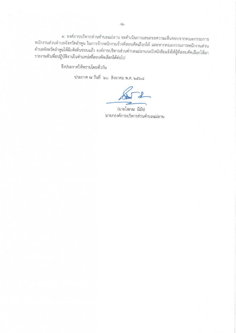 รายละเอียด : ????ประกาศองค์การบริหารส่วนตำบลแม่ลาน