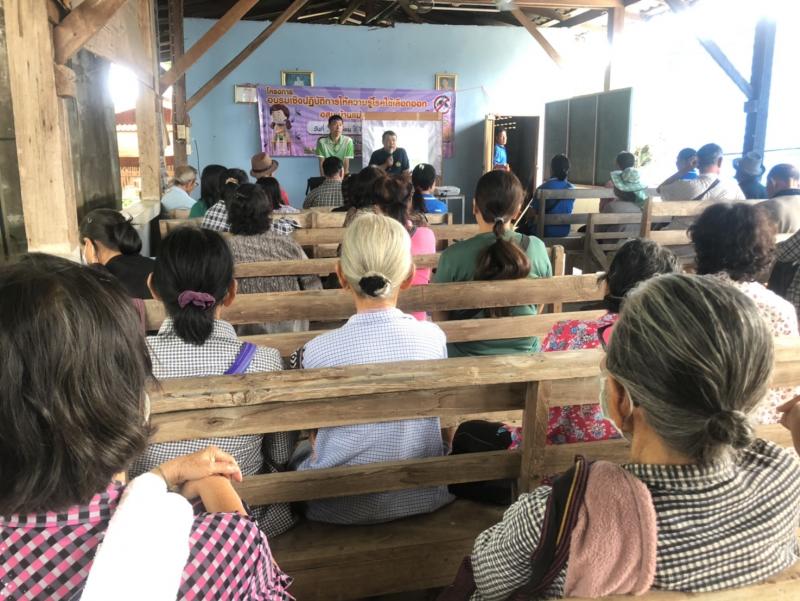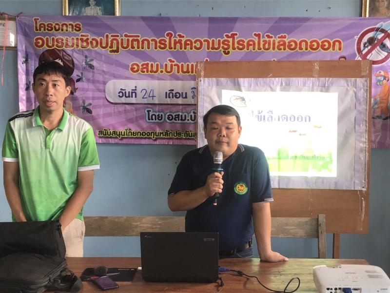 ลงพื้นที่ติดตามการดำเนินโครงการอบรมเชิงปฏิบัติการให้ความรู้โรคไข้เลือดออก บ้านแม่กองวะ หมู่ที่ 4 ตำบลแม่ลาน