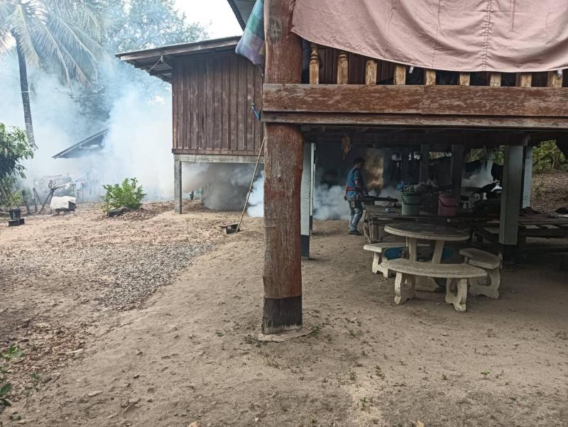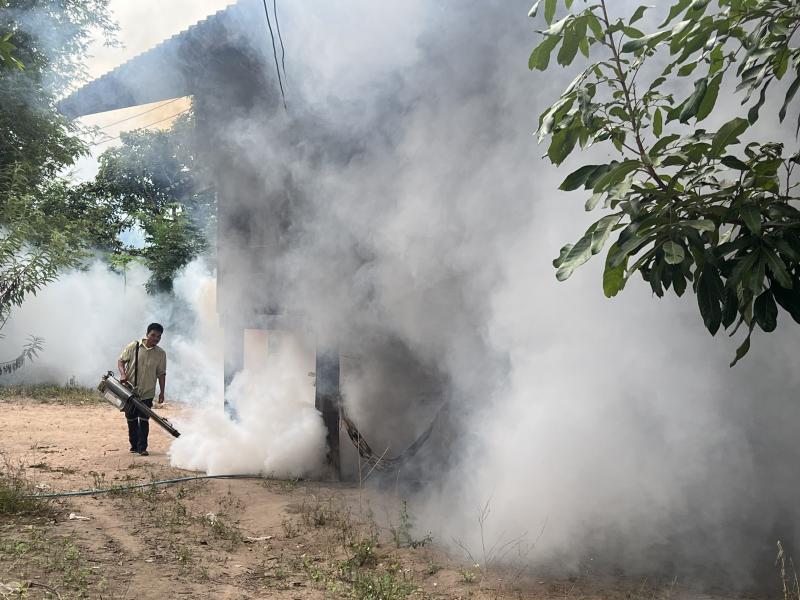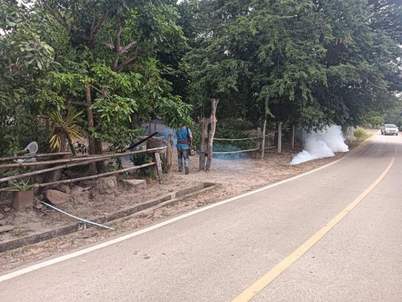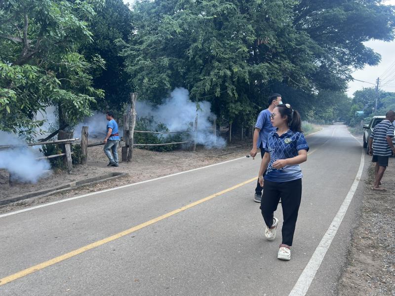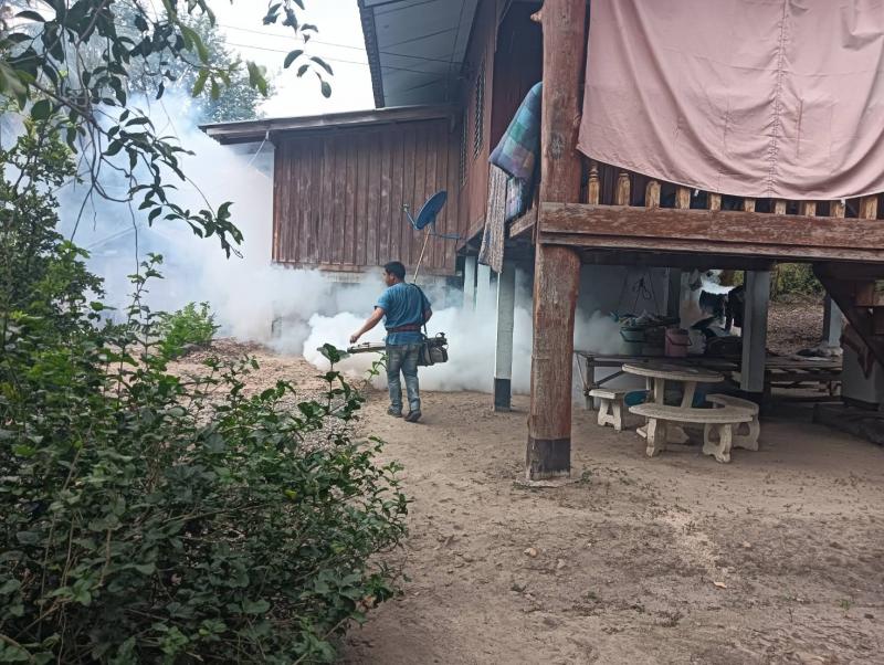 ลงพื้นที่ดำเนินการพ่นหมอกควัน และทำลายแหล่งเพาะพันธุ์ลูกน้ำยุงลาย เพื่อกำจัดยุงตัวแก่ และควบคุมป้องกันการระบาดของโรคไข้ปวดข้อยุงลาย (ชิคุนกุนยา) บริเวณบ้านผู้ป่วย บ้านห้วยทรายขาว หมู่ที่ 7 ตำบลแม่ลาน อำเภอลี้ จังหวัดลำพูน ระยะ 100 เมตร ครั้งที่ 2