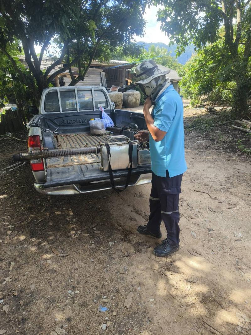 วันที่ 30 สิงหาคม 2567 องค์การบริหารส่วนตำบลแม่ลาน โดย นายโสภณ มีมัง นายกองค์การบริหารส่วนตำบลแม่ลาน มอบหมายให้ นางสาวนริศรา ใจสุยะ เจ้าพนักงานสาธารณสุข และเจ้าหน้าที่องค์การบริหารส่วนตำบลแม่ลาน ร่วมกับ รพ.สต.แม่ลาน และ อสม.บ้านเด่นเหม้า และบ้านแม่ลาน ลงพื้นที่ดำเนินการพ่นหมอกควัน และทำลายแหล่งเพาะพันธุ์ลูกน้ำยุงลาย เพื่อกำจัดยุงตัวแก่ และควบคุมการระบาดของโรคไข้เลือดออก บริเวณบ้านผู้ป่วย บ้านเด่นเหม้า หมู่ที่ 5 และโรงเรียนบ้านแม่ลาน บ้านแม่ลาน หมู่ที่ 3 ตำบลแม่ลาน อำเภอลี้ จังหวัดลำพูน ระยะ 100 เมตร ครั้งที่ 3