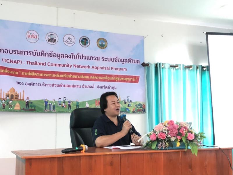รายละเอียด : วันที่ 21 มิถุนายน 2567 เวลา 09.00 น. องค์การบริหารส่วนตำบลแม่ลาน นำโดย นายโสภณ มีมัง นายกองค์การบริหารส่วนตำบลแม่ลาน พร้อมด้วยคณะผู้บริหาร หัวหน้าส่วนราชการ ข้าราชการ พนักงาน และเจ้าหน้าที่องค์การบริหารส่วนตำบลแม่ลาน เข้าร่วมการฝึกอบรมการบันทึกข้อมูลในโปรแกรม ระบบข้อมูลตำบล(TCNAP) : Thailand Community Network Appraisal Program การขับเคลื่อนงาน "ภายใต้โครงการสานพลังเครือข่ายทางสังคม ลดความเหลื่อมล้ำสู่ชุมชนสุขภาวะ" ขององค์การบริหารส่วนตำบลแม่ลาน อำเภอลี้ จังหวัดลำพูน โดยมี นายโสภณ มีมัง นายกองค์การบริหารส่วนตำบลแม่ลาน เป็นประธานในพิธีเปิดการฝึกอบรมฯ ดังกล่าว นายสมสมัย ปองนาน ปลัดองค์การบริหารส่วนตำบลแม่ลาน เป็นผู้กล่าวเปิดโครงการดังกล่าว และได้รับเกียรติจาก คุณสุขสวัฏดิ์ นันศ์ป้อม ตำแหน่ง ผู้ช่วยนักวิเคราะห์นโยบายและแผน และคุณเปรมชัย จันสุ ตำแหน่ง พนักงานจ้างเหมาบริการด้านเทศโนโลยีสารสนเทศ เทศบาลตำบลก้อ อำเภอลี้ จังหวัดลำพูน มาเป็นวิทยากรในครั้งนี้ ณ ห้องประชุมองค์การบริหารส่วนตำบลแม่ลาน ชั้น 2 อำเภอลี้ จังหวัดลำพูน