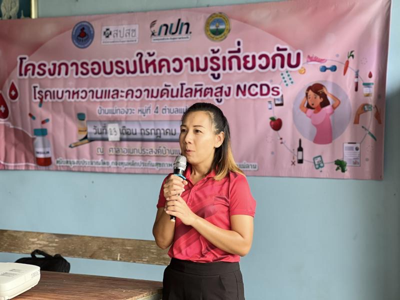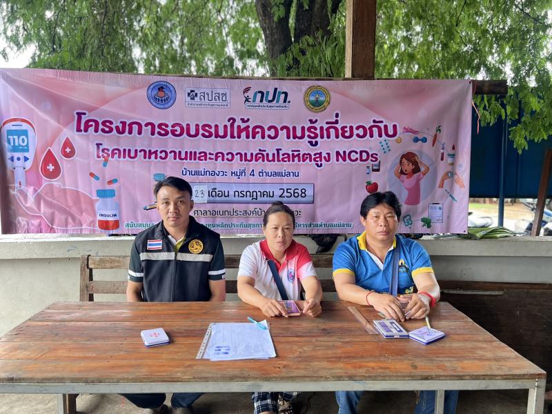 รายละเอียด : วันที่ 23 กรกฎาคม 2568 เวลา 09.00 น. องค์การบริหารส่วนตำบลแม่ลาน โดย นายโสภณ มีมัง นายกองค์การบริหารส่วนตำบลแม่ลาน มอบหมายให้ นางรัตติกร ต๊ะกาบโพธิ์ เลขานุการนายกองค์การบริหารส่วนตำบลแม่ลาน เป็นประธานในพิธีเปิดโครงการอบรมให้ความรู้เกี่ยวกับโรคเบาหวานและความดันโลหิตสูง NCDs บ้านแม่กองวะ หมู่ที่ 4 ประจำปีงบประมาณ พ.ศ.2568