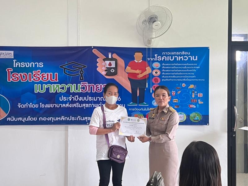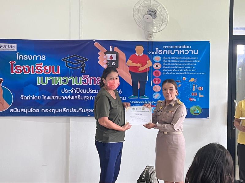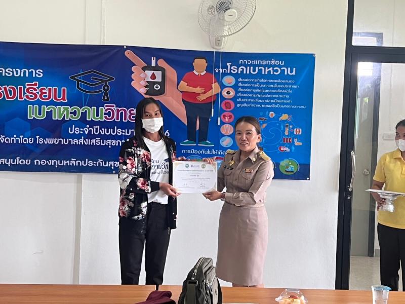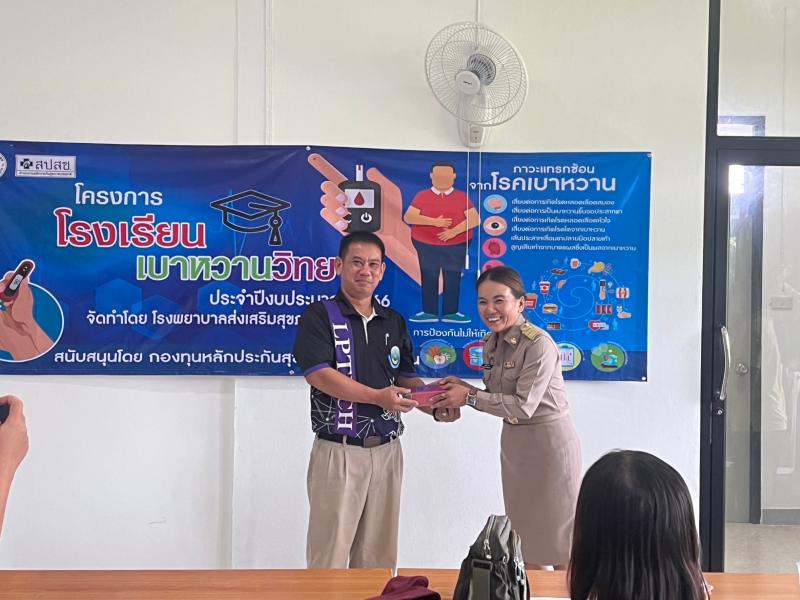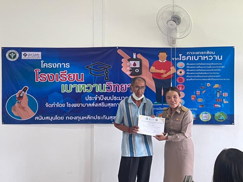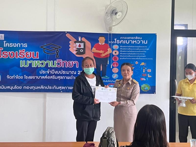 วันที่ 30 ตุลาคม 2566 เวลา 09.00 น. องค์การบริหารส่วนตำบลแม่ลาน โดย นายโสภณ มีมัง นายกองค์การบริหารส่วนตำบลแม่ลาน มอบหมายให้ นางชนันนิดา คำทา รองนายกองค์การบริหารส่วนตำบลแม่ลาน พร้อมด้วย นายประวิทย์ ล่าเพ็ง ผู้อำนวยการกองการศึกษาองค์การบริหารส่วนตำบลแม่ลาน นางสอิงคราทย์ สังพิชัย นักพัฒนาชุมชน นางสาวนริศรา ใจสุยะ เจ้าพนักงานสาธารณสุขปฏิบัติงาน นายเอนก สีวิจี๋ ผู้ช่วยนักวิเคราะห์นโยบายและแผน และเจ้าหน้าที่องค์การบริหารส่วนตำบลแม่ลาน ร่วมพิธีปิดโครงการโรงเรียนเบาหวานวิทยาตำบลแม่ลาน พร้อมมอบใบประกาศนียบัตรให้นักเรียน โดยมี นางชนันนิดา คำทา รองนายกองค์การบริหารส่วนตำบลแม่ลาน เป็นประธานในพิธีฯ แทนนายกองค์การบริหารส่วนตำบลแม่ลาน ณ ห้องประชุมโรงพยาบาลส่งเสริมสุขภาพตำบลแม่ลาน อำเภอลี้ จังหวัดลำพูน