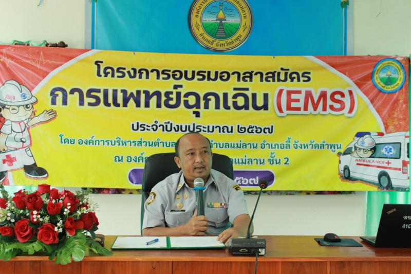 วันที่ 3 กันยายน 2567 องค์การบริหารส่วนตำบลแม่ลาน นำโดย นายโสภณ มีมัง นายกองค์การบริหารส่วนตำบลแม่ลาน เป็นประธานในพิธีเปิดโครงการอบรมอาสาสมัครการแพทย์ฉุกเฉิน (EMS) ประจำปีงบประมาณ พ.ศ.2567 เพื่อพัฒนาศักยภาพการปฏิบัติงานระบบอาสาสมัครการแพทย์ฉุกเฉิน ตำบลแม่ลาน และเตรียมความพร้อมในการให้ความช่วยเหลือผู้ประสบอุบัติเหตุและยกระดับขีดความสามารถของเจ้าหน้าที่ผู้ปฏิบัติงานในระบบการแพทย์ฉุกเฉิน โดยมีหัวหน้าส่วนราชการ ข้าราชการ พนักงาน เจ้าหน้าที่ และ เจ้าหน้าที่กู้ชีพองค์การบริหารส่วนตำบลแม่ลาน และตัวแทน อาสาสมัครสาธารณสุขประจำหมู่บ้านตำบลแม่ลาน ร่วมกิจกรรม โดยได้รับเกียรติจาก นายฉัตรชัย อัมพรพิศ พยาบาลวิชาชีพฯ และนายรณชัย พงษ์สุวรรณ เจ้าพนักงานสาธารณสุขฯ โรงพยาบาลลี้ มาเป็นวิทยากรในโครงการดังกล่าวฯ ณ ห้องประชุมองค์การบริหารส่วนตำบลแม่ลาน ชั้น 2 ตำบลแม่ลาน อำเภอลี้ จังหวัดลำพูน