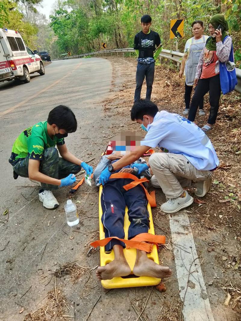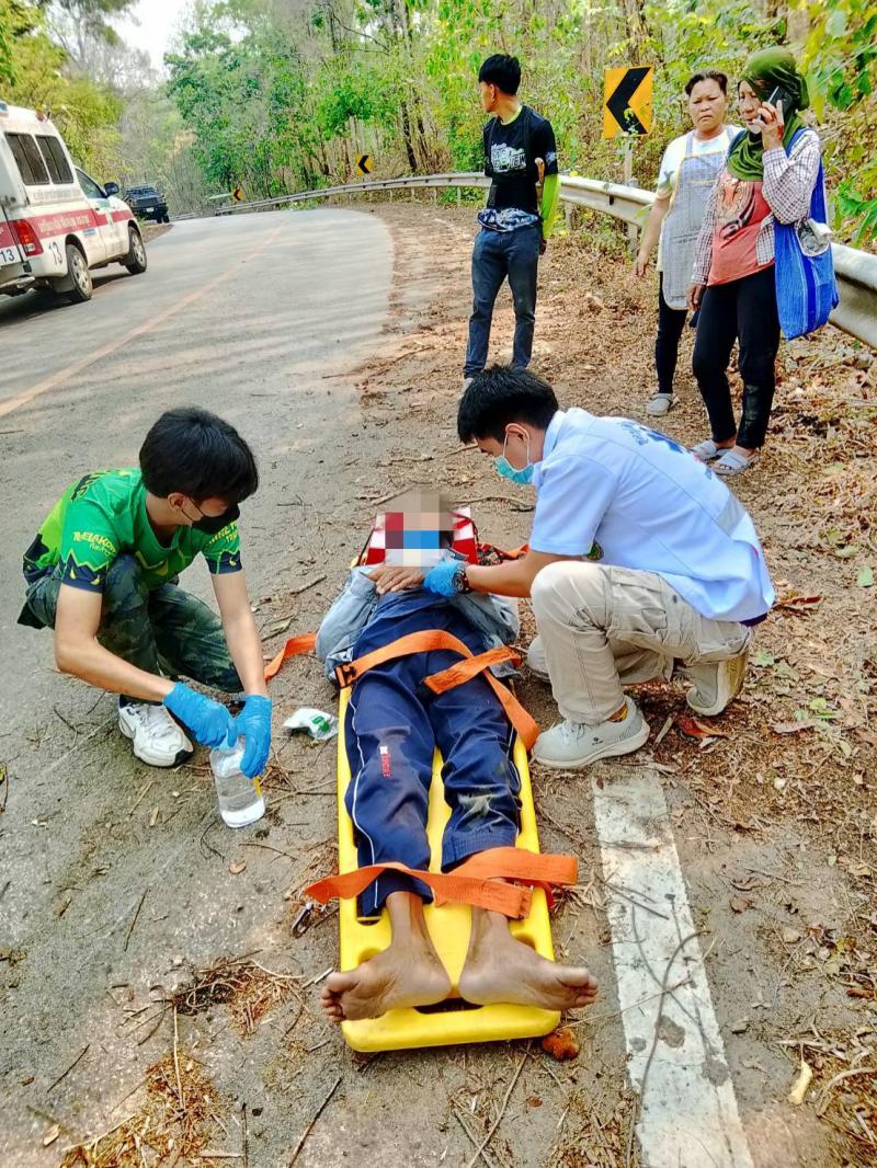 รายละเอียด : วันที่ 9 เมษายน 2567 องค์การบริหารส่วนตำบลแม่ลาน โดย นายโสภณ มีมัง นายกองค์การบริหารส่วนตำบลแม่ลาน มอบหมายให้เจ้าหน้าที่กู้ชีพองค์การบริหารส่วนตำบลแม่ลาน ออกเหตุรับผู้บาดเจ็บ เนื่องจากรถจักรยานยนต์ล้มเอง ถนนสายก้อ - ผาต้าย หมู่ที่ 1 ทำการปฐมพยาบาลเบื้องต้น ทำแผลและใส่ Hard collar ดามคอ นำตัวส่งโรงพยาบาลลี้ อำเภอลี้ จังหวัดลำพูน เพื่อทำการรักษาต่อไป