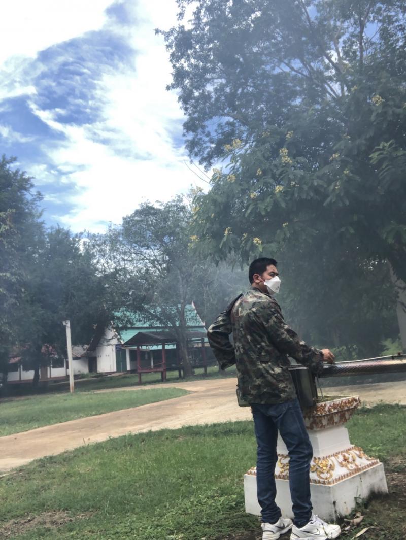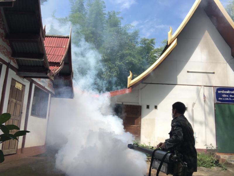 วันที่ 6 กันยายน 2566 องค์การบริหารส่วนตำบลแม่ลาน โดย นายโสภณ มีมัง นายกองค์การบริหารส่วนตำบลแม่ลาน มอบหมายให้ เจ้าหน้าที่องค์การบริหารส่วนตำบลแม่ลาน ลงพื้นที่ดำเนินการพ่นหมอกควัน เพื่อกำจัดยุงตัวแก่ และควบคุมการระบาดของโรคไข้เลือดออก บริเวณวัดพระพุทธบาทผาผึ้ง บ้านผาต้าย หมู่ที่ 1 ตำบลแม่ลาน อำเภอลี้ จังหวัดลำพูน ระยะ 100 เมตร ครั้งที่ 3 Day 7 ครั้งสุดท้าย (เคสผู้ป่วยสามเณร)