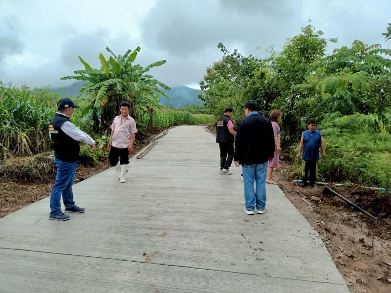 ลงพื้นที่ตรวจดูการดำเนินงาน โครงการก่อสร้างถนนคอนกรีตเสริมเหล็ก สายหนองตึง บ้านหนองมะล้อ หมู่ที่ 2 อำเภอลี้ จังหวัดลำพูน
