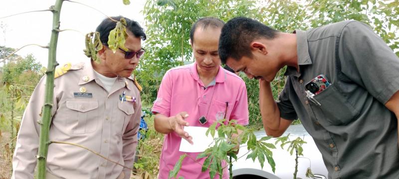 วันที่ 23 กรกฎาคม 2567 องค์การบริหารส่วนตำบลแม่ลาน โดย นายโสภณ มีมัง นายกองค์การบริหารส่วนตำบลแม่ลาน มอบหมายให้ นายเสาร์คำ แก้วปลูก รองนายกองค์การบริหารส่วนตำบลแม่ลาน พร้อมด้วย สมาชิกสภาองค์การบริหารส่วนตำบลแม่ลาน และ เจ้าพนักงานป้องกันและสาธารณภัยฯ ร่วมกับเกษตรอำเภอลี้ ลงพื้นที่ตรวจสอบแปลงปลูกมันสำปะหลัง บ้านหนองมะล้อ หมู่ที่ 2 ตำบลแม่ลาน อำเภอลี้ จังหวัดลำพูน พบว่ามีการระบาดของไรแดง โดยเบื้องต้นเมื่อสอบถามถึงวิธีการป้องกันกำจัดจากเกษตรกรเจ้าของแปลงปลูกรับทราบว่าส่วนใหญ่จะใช้ยาป้องกันกำจัดเพลี้ยไฟมาฉีดพ่นหวังทำลาย ซึ่งเป็นการใช้สารเคมีกำจัดผิดกลุ่มแมลงเป็นการเพิ่มต้นทุนการผลิตของเกษตรกรที่ไม่ได้เป็นผลในทางบวก เป็นการสูญเปล่า เพราะการเข้าทำลายแปลงปลูกดังกล่าวเป็นไรแดง เจ้าหน้าที่จึงได้แนะนำให้สารเคมีป้องกันกำจัดไรแดง จำพวก อามีทราซ ไพริดาเบน สไปโรมีเซน เป็นต้น