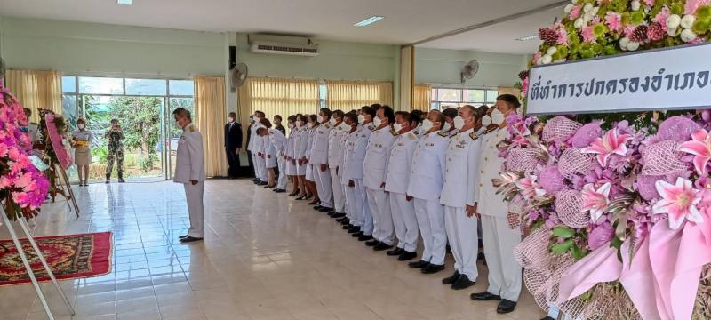 รายละเอียด : วันที่ 23 ตุลาคม 2565 องค์การบริหารส่วนตำบลแม่ลาน นำโดยนายโสภณ มีมัง นายกองค์การบริหารส่วนตำบลแม่ลาน พร้อมด้วยคณะผู้บริหาร ปลัดองค์การบริหารส่วนตำบลแม่ลาน หัวหน้าส่วนราชการ ข้าราชการ พนักงาน เจ้าหน้าที่องค์การบริหารส่วนตำบลแม่ลาน เข้าร่วมพิธีวางพวงมาลา เนื่องในวันคล้ายวันสวรรคต พระบาทสมเด็จพระจุลจอมเกล้าเจ้าอยู่หัว รัชกาลที่ 5 (วันปิยมหาราช) โดยมี นายวิวัฒน์ จันทร์โอภาส นายอำเภอลี้ เป็นประธานในพิธี ณ อาคารเมืองนักบุญ หอประชุมที่ว่าการอำเภอลี้ จังหวัดลำพูน