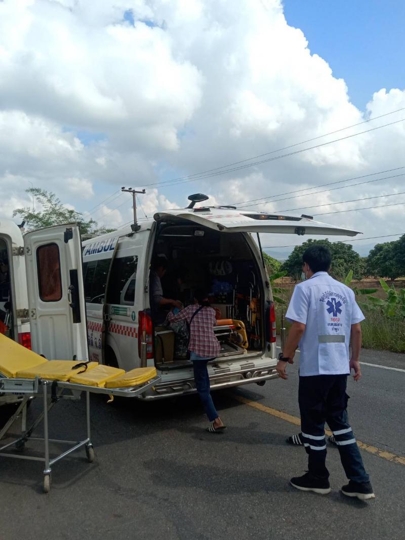 ประสานส่งต่อผู้ป่วยระหว่างทางให้กับเจ้าหน้าที่โรงพยาบาลลี้ เพื่อนำผู้ป่วยไปรักษาต่อ ณ โรงพยาบาลลี้ อำเภอลี้ จังหวัดลำพูน