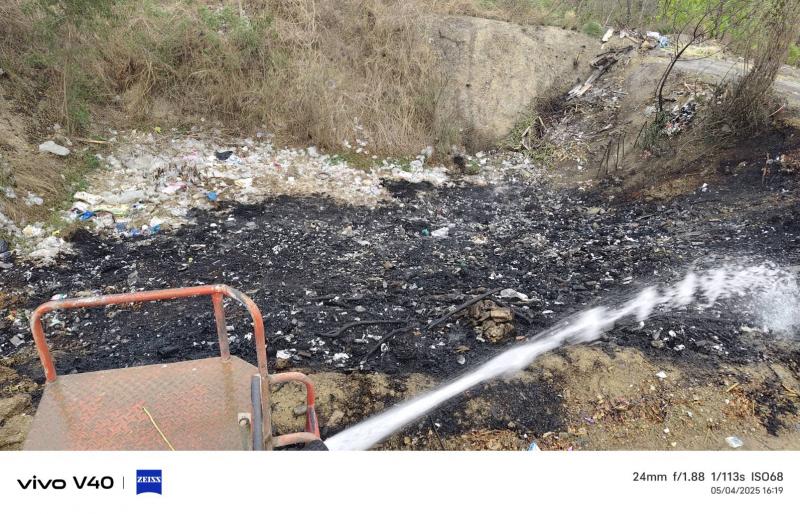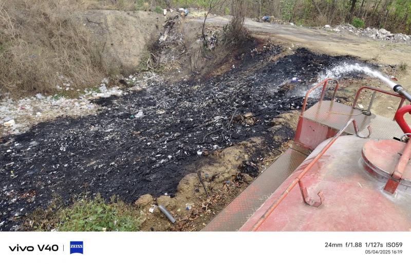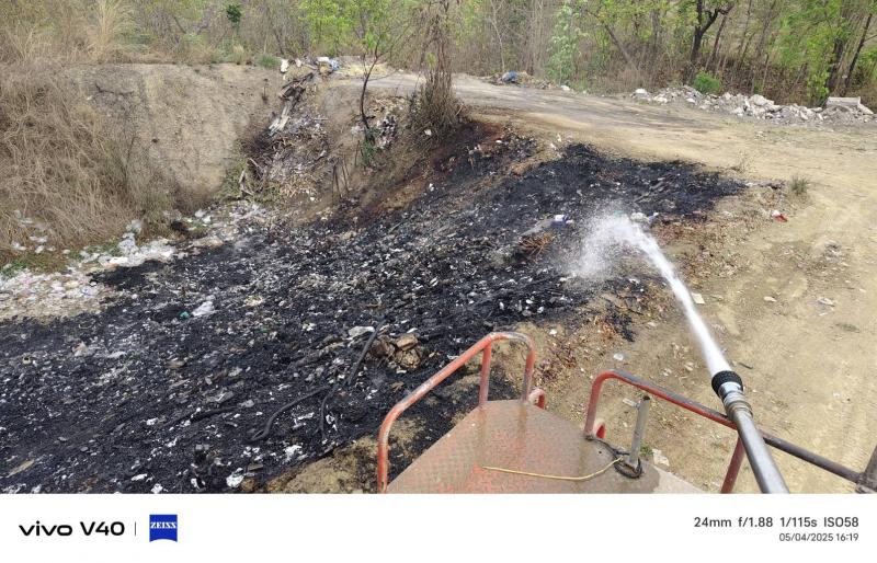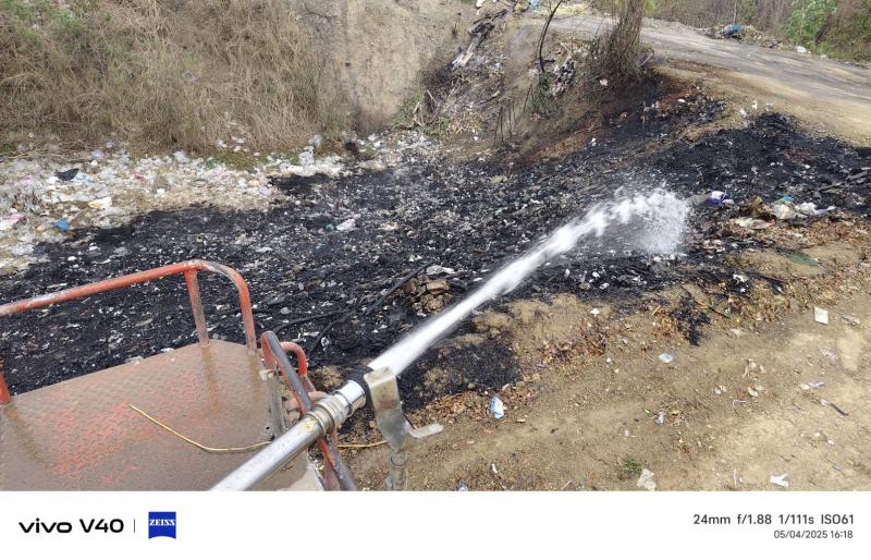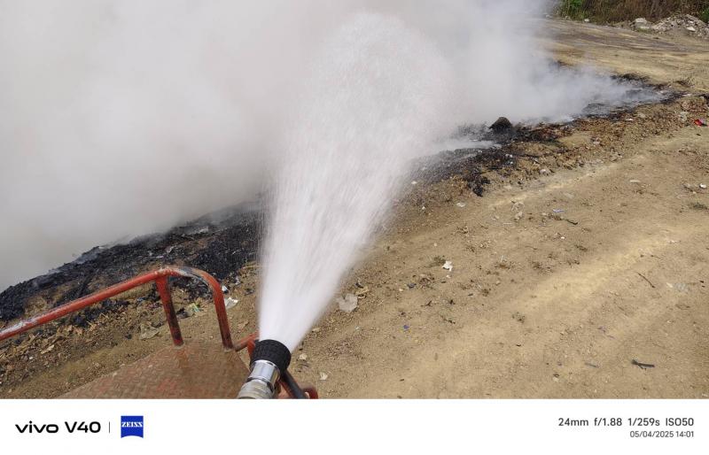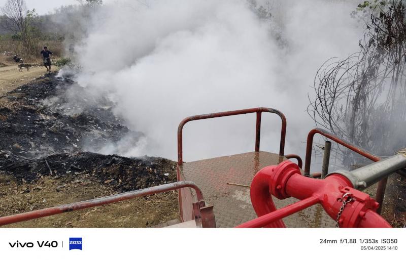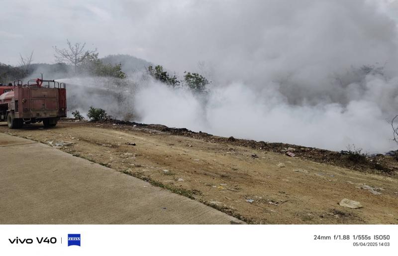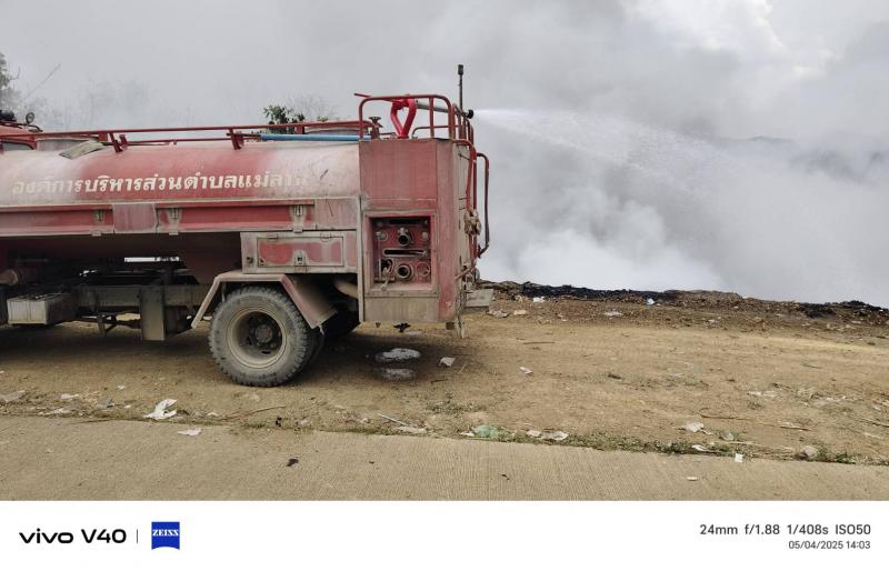 ลงพื้นที่นำรถบรรทุกน้ำดับไฟไหม้ บริเวณบ่อขยะบ้านแม่ลาน หมู่ที่ 3 ตำบลแม่ลาน อำเภอลี้ จังหวัดลำพูน