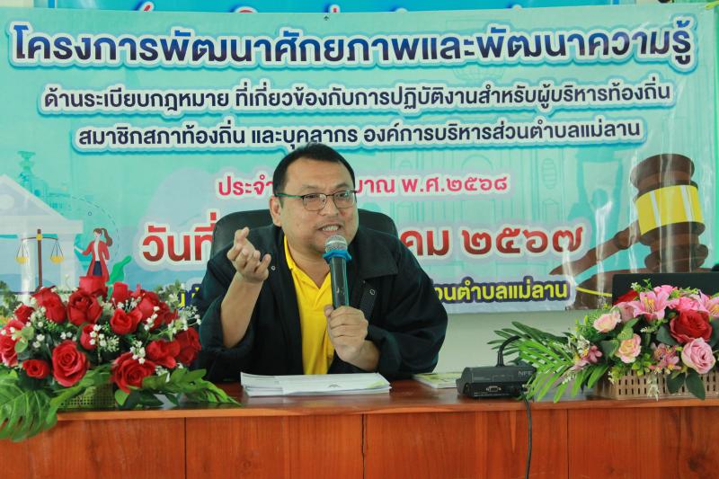 วันที่ 26 ธันวาคม 2567 เวลา 08.00 น. องค์การบริหารส่วนตำบลแม่ลาน นำโดย นายโสภณ มีมัง นายกองค์การบริหารส่วนตำบลแม่ลาน พร้อมด้วยคณะผู้บริหาร สมาชิกสภาองค์การบริหารส่วนตำบลแม่ลาน หัวหน้าส่วนราชการ พนักงานและเจ้าหน้าที่องค์การบริหารส่วนตำบลแม่ลาน จัดการอบรมและประชุมเชิงปฎิบัติการโครงการพัฒนาศักยภาพและพัฒนาความรู้ด้านระเบียบกฎหมายที่เกี่ยวข้องกับการปฏิบัติงาน นโยบาย No Gift Policy การไม่รับของขวัญและของกำนัลทุกชนิดจากการปฎิบัติหน้าที่ สำหรับผู้บริหารส่วนท้องถิ่น สมาชิกสภาท้องถิ่นและบุคลากรองค์การบริหารส่วนตำบลแม่ลาน ประจำปีงบประมาณ พ.ศ.2568 มีวัตถุประสงค์เพื่อปลูกจิตสำนึกหรือสร้างวัฒนธรรมให้เจ้าหน้าที่ในการปฎิเสธการรับของขวัญและของกำนัลทุกชนิดจากการปฎิบัติหน้าที่ โดยได้รับเกียรติจาก นายสุพจน์ บารมี ท้องถิ่นอำเภอลี้ จังหวัดลำพูน มาเป็นวิทยากรผู้บรรยาย โดยมีผู้เข้าร่วมกิจกรรม ดังนี้ คณะผู้บริหาร จำนวน 4 คน ข้าราชการ 15 คน พนักงานจ้างภารกิจ 5 คน ลูกจ้างทั่วไป 10 คน และพนักงานจ้างเหมาบริการ จำนวน 5 คน ณ ห้องประชุมองค์การบริหารส่วนตำบลแม่ลาน ชั้น 2 อำเภอลี้ จังหวัดลำพูน