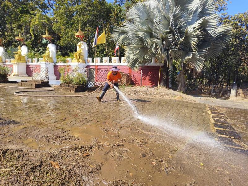 นำรถน้ำฉีดล้างทำความสะอาดลานหน้าพุทธอุทยานชัยยะสุขังปางประทีป ณ พุทธอุทยานเฉลิมพระเกียรติ 80 พรรษา พุทธอุทยานชัยยะสุขังปางประทีป (แท่นดอกไม้) ตำบลนาทราย อำเภอลี้ จังหวัดลำพูน
