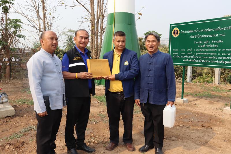 ร่วมพิธีเปิดโครงการพัฒนาน้ำบาดาลเพื่อความมั่นคงระดับชุมชน ประจำปีงบประมาณ พ.ศ.2567 ในพื้นที่เทศบาลตำบลแม่ตืน บ้านแม่ตืน หมู่ที่ 3 ตำบลแม่ตืน อำเภอลี้ จังหวัดลำพูน สร้างโดย กรมทรัพยากรน้ำบาดาล กระทรวงทรัพยากรธรรมชาติและสิ่งแวดล้อม