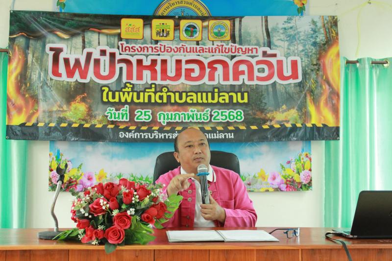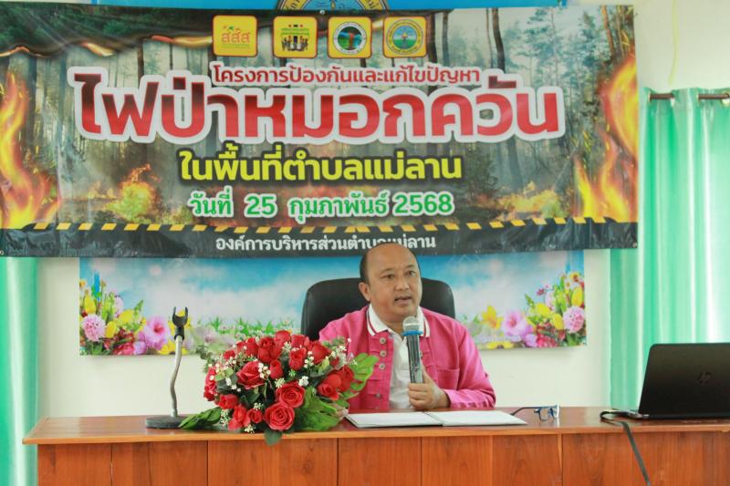วันที่ 25 กุมภาพันธ์ 2568 เวลา 08.30 น. องค์การบริหารส่วนตำบลแม่ลาน นำโดย นายโสภณ มีมัง นายกองค์การบริหารส่วนตำบลแม่ลาน พร้อมด้วยคณะผู้บริหาร สมาชิกสภาองค์การบริหารส่วนตำบลแม่ลาน หัวหน้าส่วนราชการ ข้าราชการ และพนักงาน เจ้าหน้าที่องค์การบริหารส่วนตำบลแม่ลาน ได้ดำเนินกิจกรรมอบรม "โครงการป้องกันและแก้ไขปัญหาไฟป่าหมอกควันในพื้นที่ตำบลแม่ลาน" เพื่อเพิ่มขีดความสามารถขององค์กรปกครองส่วนท้องถิ่นในการส่งเสริมและสนับสนุนให้เกิดความเข้มแข็งของชุมชน ควบคู่กับการร่วมกันส่งเสริมให้ชุมชนท้องถิ่นจัดการตนเองสู่การเป็นชุมชนท้องถิ่นน่าอยู่ โดยสำนักงานกองทุนสนับสนุนการสร้างเสริมสุขภาพ (สสส.) ประเด็นขับเคลื่อนงาน "โครงการป้องกันและแก้ไขปัญหาไฟป่าหมอกควันในพื้นที่ตำบลแม่ลาน" โดยมี นายโสภณ มีมัง นายกองค์การบริหารส่วนตำบลแม่ลาน เป็นประธานในพิธีกล่าวเปิดการอบรมดังกล่าวฯ และมีนายกิตติ ธงสิบสอง หัวหน้าสำนักปลัดองค์การบริหารส่วนตำบลแม่ลาน กล่าวรายงานต่อท่านประธานในพิธีฯ ได้รับเกียรติจาก นายธิติศักดิ์ เขื่อนเพชร เจ้าพนักงานป้องกันและบรรเทาสาธารณภัยชำนาญงาน เทศบาลตำบลลี้ แล