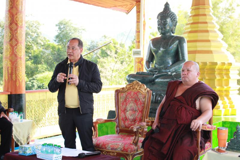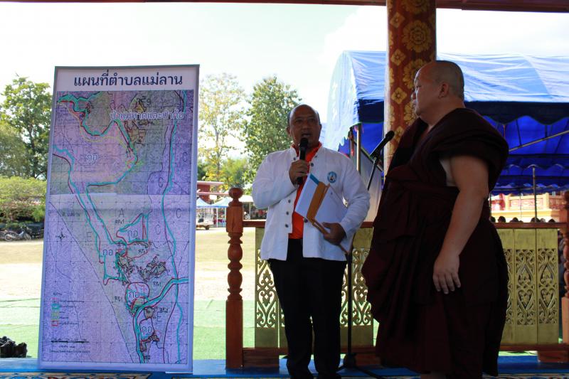 พร้อมยืนหนังสือติดตามการขอยกเลิกพื้นที่ป่าไม้ถาวรในเขตพื้นที่ตำบลแม่ลาน ผ่านอธิบดีกรมป่าไม้ ณ วัดเด่นเหม้า บ้านเด่นเหม้า ตำบลแม่ลาน อำเภอลี้ จังหวัดลำพูน