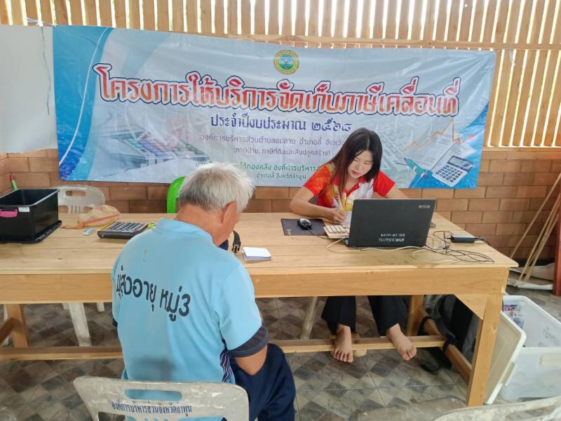 ลงพื้นที่จัดเก็บภาษีเคลื่อนที่ ตามโครงการให้บริการจัดเก็บภาษีเคลื่อนที่ ประจำปีงบประมาณ 2568 (ภาษีป้าย,ภาษีที่ดินและสิ่งปลูกสร้าง)