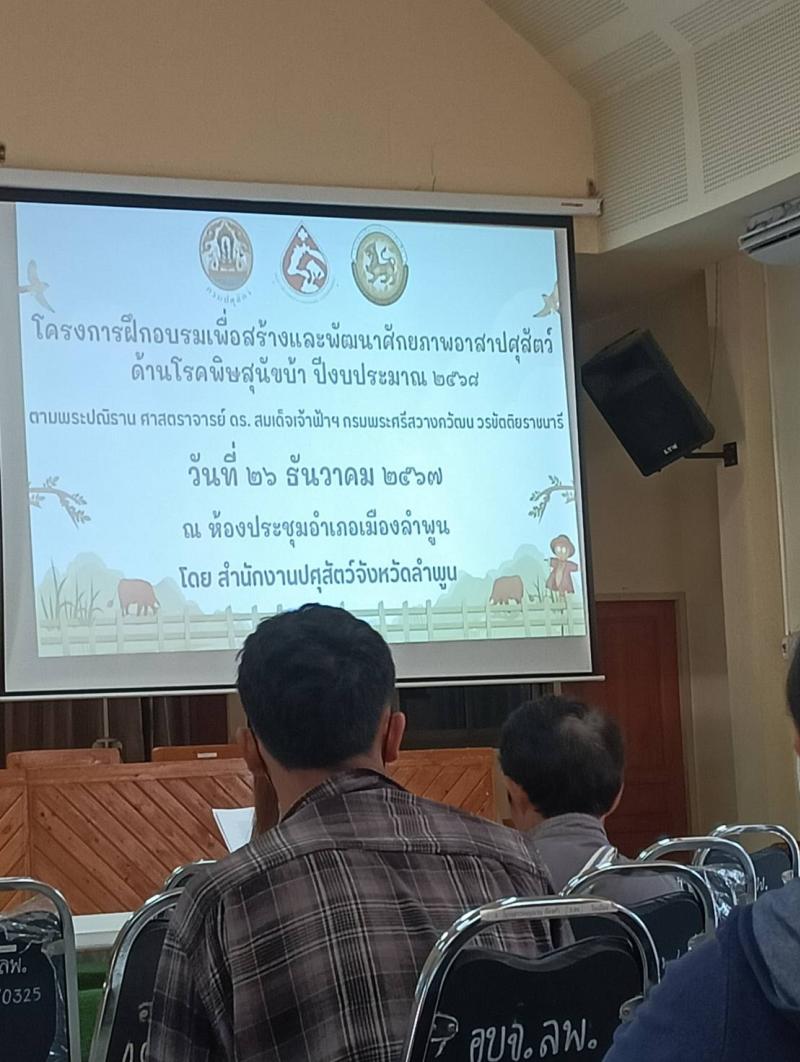 เข้าร่วมโครงการฝึกอบรมเพื่อสร้างและพัฒนาศักยภาพอาสาปศุสัตว์ด้านโรคพิษสุนัขบ้า ปีงบประมาณ พ.ศ. 2568 ภายใต้แผนยุทธศาสตร์การดำเนินโครงการสัตว์ปลอดโรค คนปลอดภัย จากโรคพิษสุนัขบ้า ตามพระราชปณิธาน ศาสตราจารย์ ดร. สมเด็จเจ้าฟ้าฯกรมพระศรีสวางควัฒน วรขัตติยราชนารี โดยสำนักงานปศุสัตว์จังหวัดลำพูน