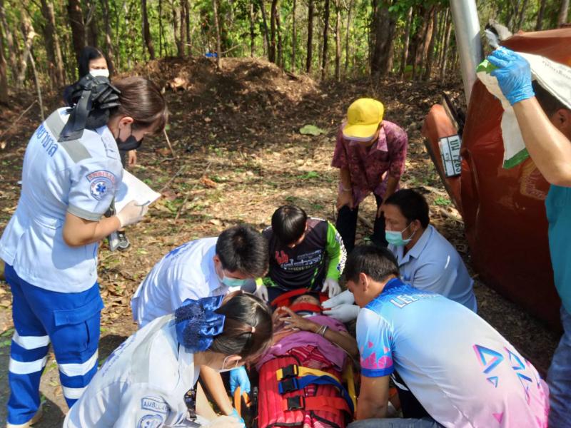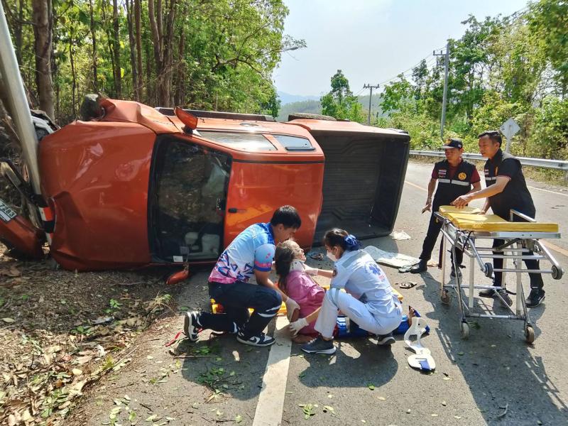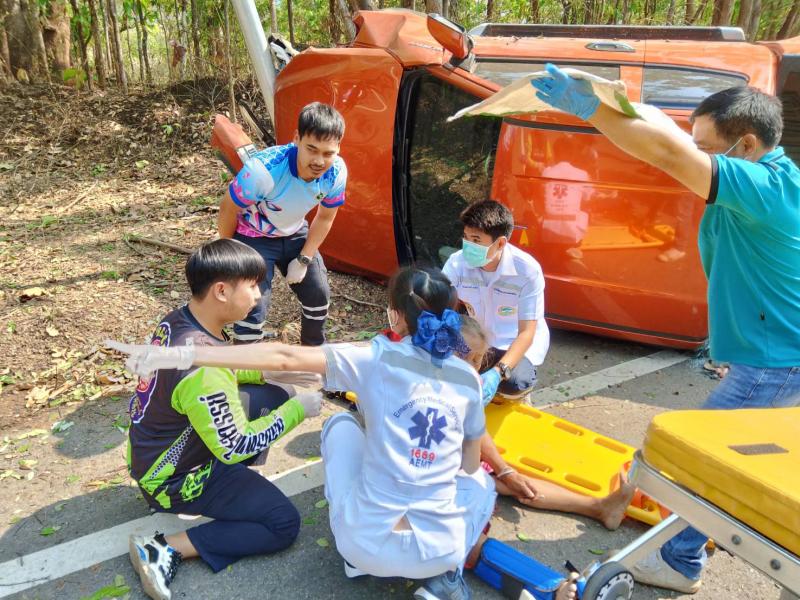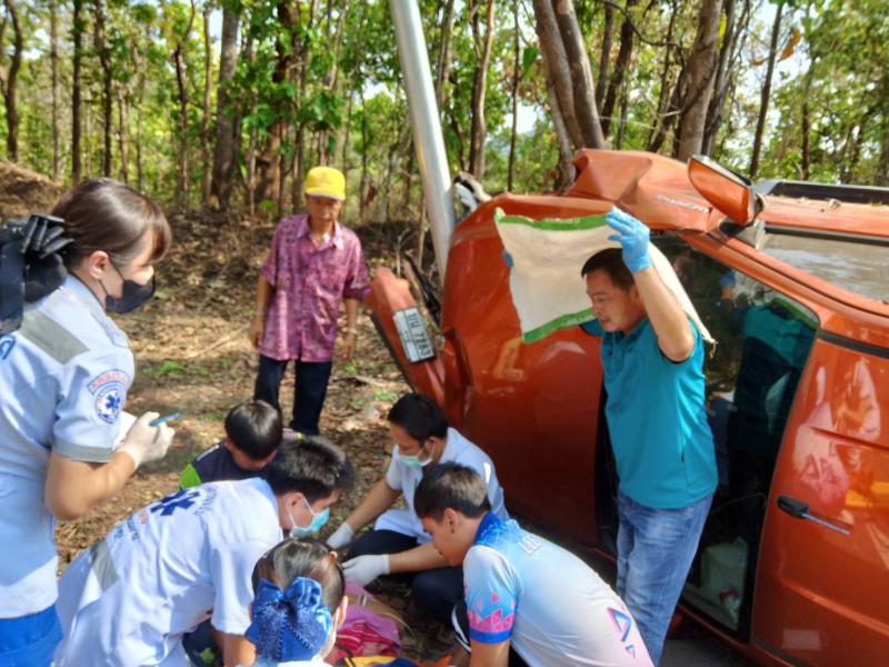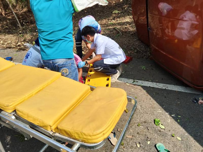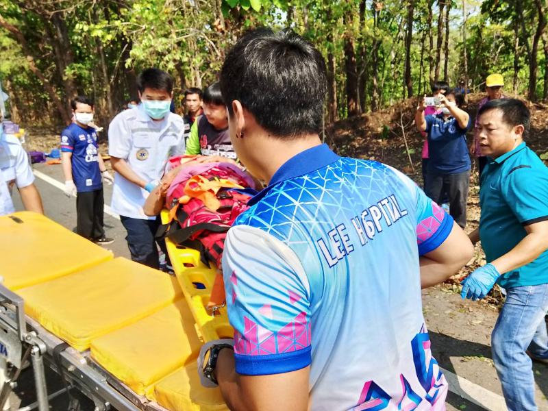 รายละเอียด : วันที่ 11 เมษายน 2567 องค์การบริหารส่วนตำบลแม่ลาน โดย นายโสภณ มีมัง นายกองค์การบริหารส่วนตำบลแม่ลาน มอบหมายให้เจ้าหน้าที่กู้ชีพองค์การบริหารส่วนตำบลแม่ลาน ร่วมกับเจ้าหน้าที่กู้ชีพองค์การบริหารส่วนตำบลนาทราย เจ้าหน้าที่กู้ชีพเทศบาลตำบลวังดิน โรงพยาบาลลี้ และมูลนิธิพุทไธสวรรค์ ออกเหตุรับผู้บาดเจ็บ บริเวณถนนเส้นลี้ - ก้อ ใกล้พุทธอุทยานเฉลิมพระเกียรติ 80 พรรษา พุทธอุทยานชัยยะสุขังปางประทีป และบ้านผาต้าย หมู่ที่ 1 ตำบลแม่ลาน อำเภอลี้ จังหวัดลำพูน จำนวน 13 ราย โดยเป็นเด็ก 6 ราย ผู้ใหญ่ 7 ราย เนื่องจากรถยนต์เสียหลักชนเสาไฟฟ้าส่องสว่าง เบื้องต้นได้ทำการปฐมพยาบาล นำตัวส่งโรงพยาบาลลี้ อำเภอลี้ จังหวัดลำพูน เพื่อทำการรักษาต่อไป