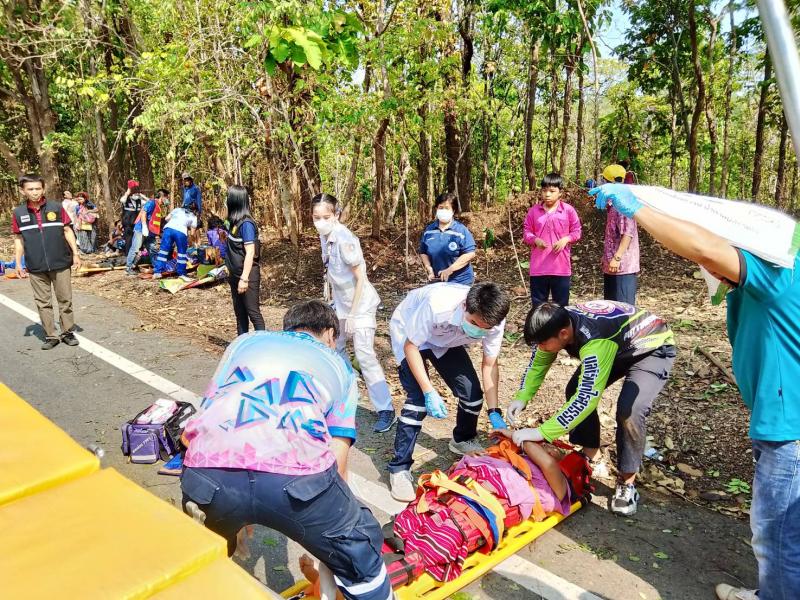 วันที่ 11 เมษายน 2567 องค์การบริหารส่วนตำบลแม่ลาน โดย นายโสภณ มีมัง นายกองค์การบริหารส่วนตำบลแม่ลาน มอบหมายให้เจ้าหน้าที่กู้ชีพองค์การบริหารส่วนตำบลแม่ลาน ร่วมกับเจ้าหน้าที่กู้ชีพองค์การบริหารส่วนตำบลนาทราย เจ้าหน้าที่กู้ชีพเทศบาลตำบลวังดิน โรงพยาบาลลี้ และมูลนิธิพุทไธสวรรค์ ออกเหตุรับผู้บาดเจ็บ บริเวณถนนเส้นลี้ - ก้อ ใกล้พุทธอุทยานเฉลิมพระเกียรติ 80 พรรษา พุทธอุทยานชัยยะสุขังปางประทีป และบ้านผาต้าย หมู่ที่ 1 ตำบลแม่ลาน อำเภอลี้ จังหวัดลำพูน จำนวน 13 ราย โดยเป็นเด็ก 6 ราย ผู้ใหญ่ 7 ราย เนื่องจากรถยนต์เสียหลักชนเสาไฟฟ้าส่องสว่าง เบื้องต้นได้ทำการปฐมพยาบาล นำตัวส่งโรงพยาบาลลี้ อำเภอลี้ จังหวัดลำพูน เพื่อทำการรักษาต่อไป