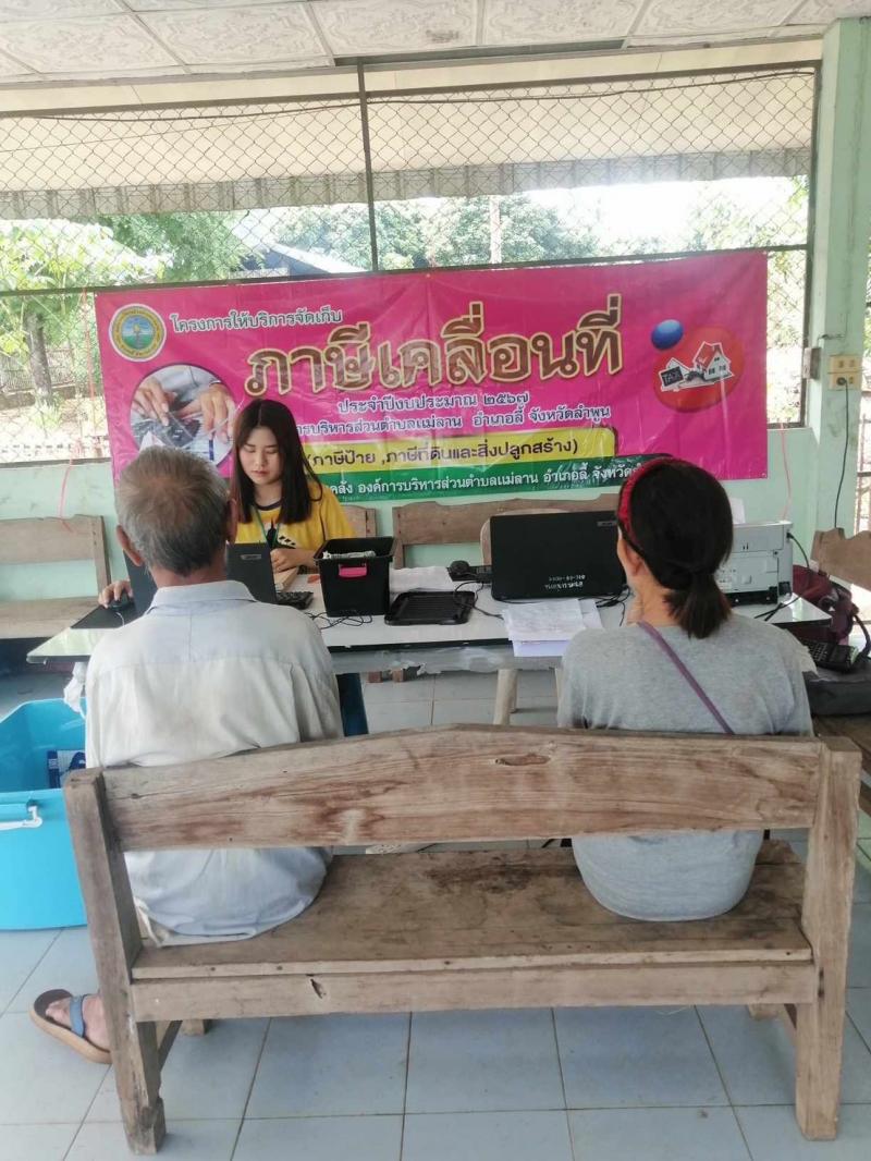 วันที่ 10 มิถุนายน 2567 องค์การบริหารส่วนตำบลแม่ลาน โดย นายโสภณ มีมัง นายกองค์การบริหารส่วนตำบลแม่ลาน มอบหมายให้เจ้าหน้าที่งานจัดเก็บรายได้องค์การบริหารส่วนตำบลแม่ลาน ลงพื้นที่จัดเก็บภาษีเคลื่อนที่ ตามโครงการให้บริการจัดเก็บภาษีเคลื่อนที่ ประจำปีงบประมาณ 2567 (ภาษีป้าย,ภาษีที่ดินและสิ่งปลูกสร้าง) ณ บ้านผาต้ายเหนือ หมู่ที่ 6 ตำบลแม่ลาน อำเภอลี้ จังหวัดลำพูน