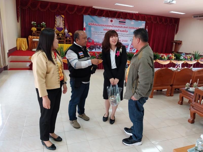โดยมี นายฮาราดะ มาซารุ กงสุลใหญ่ญี่ปุ่น ณ นครเชียงใหม่ และนายสุกิคิ ทาคาฮิโร รองกงสุลใหญ่ญี่ปุ่น ณ นครเชียงใหม่ เป็นผู้ส่งมอบ และ นายโยธิน ประสงค์ความดี รองผู้ว่าราชการจังหวัดลำพูน เป็นผู้กล่าวต้อนรับ และมีหน่วยงานราชการเข้าร่วม ได้แก่ นายรุ่งโรจน์ สุนทร ท้องถิ่นจังหวัด นายธนา นวลปลอด หัวหน้าสำนักงานป้องกันและบรรเทาสาธารณภัยจังหวัดลำพูน นายรวมศิลป์ มานะจงประเสริฐ ผู้อำนวยการสำนักงานทรัพยากรธรรมชาติและสิ่งแวดล้อมจังหวัดลำพูน นายณัฐภัค อโนต๊ะ ปลัดอำเภอลี้ นางสาวเรืองขวัญิสุริยะปัน หัวหน้าสำนักงานเกษตรอำเภอลี้ นายธนาธิป อุต๊ะมา นายกองค์การบริหารส่วนตำบลเวียงแก้ว กำนัน ผู้ใหญ่บ้าน สมาชิกสภาเทศบาลตำบลก้อ และพนักงานเจ้าหน้าที่เทศบาลตำบลก้อ เข้าร่วม