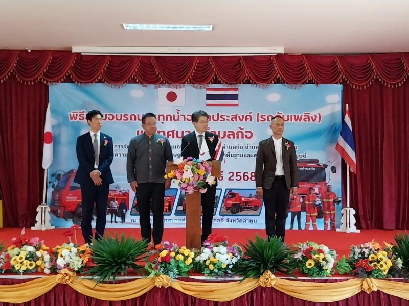 เข้าร่วมพิธีส่งมอบรถบรรทุกน้ำอเนกประสงค์ (รถดับเพลิง) โดยกงสุลใหญ่ญี่ปุ่น ณ นครเชียงใหม่ มอบแก่เทศบาลตำบลก้อ ตามโครงการจัดหารถบรรทุกน้ำอเนกประสงค์ เทศบาลตำบลก้อ อำเภอลี้ จังหวัดลำพูน ผ่านโครงการความร่วมมือทางด้านเศรษฐกิจแบบให้เปล่าเพื่อพื้นฐานและความมั่นคงของมนุษย์ (คุซะโนะเนะ)
