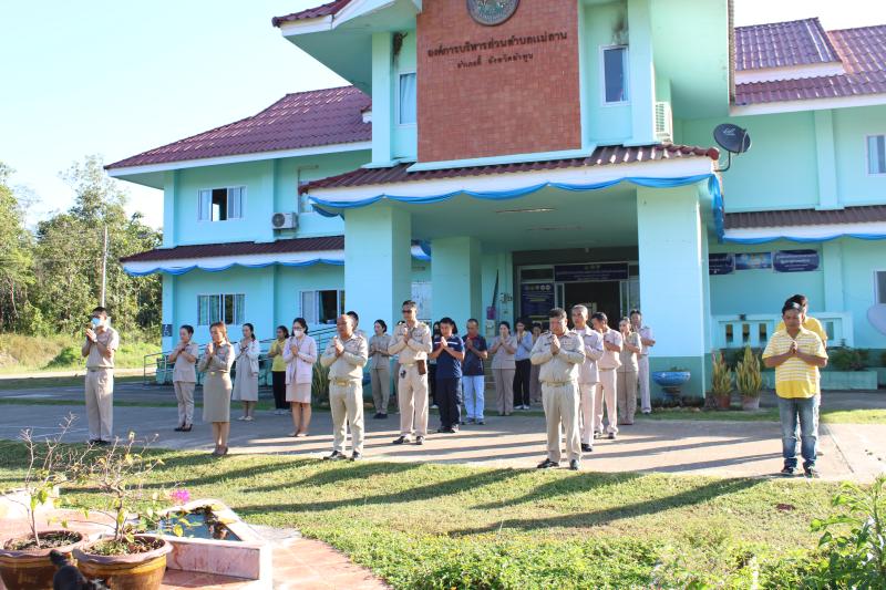 วัน จันทร์ ที่ 20 พฤศจิกายน 2566 เวลา 08.30 น. องค์การบริหารส่วนตำบลแม่ลาน นำโดย นายโสภณ มีมัง นายกองค์การบริหารส่วนตำบลแม่ลาน พร้อมด้วยคณะผู้บริหาร ปลัดองค์การบริหารส่วนตำบลแม่ลาน หัวหน้าส่วนราชการ ข้าราชการ และพนักงาน เจ้าหน้าที่องค์การบริหารส่วนตำบลแม่ลาน ได้ดำเนินกิจกรรม เข้าแถวเคารพธงชาติสร้างความจงรักภักดีต่อสถาบันชาติ ศาสนา และ พระมหากษัตริย์ เพื่อเป็นการสนับสนุนคุณธรรมจริยธรรมให้แก่คณะผู้บริหาร พนักงานองค์การบริหารส่วนตำบลแม่ลาน ส่งเสริมสร้างความจงรักภักดี ต่อสถาบันชาติ ศาสนา และพระมหากษัตริย์ ทั้งการแจ้งข้อมูลข่าวสารงานต่างๆ แก่พนักงาน เพื่อให้มีลักษณะเป็นองค์กรแห่งการเรียนรู้อย่างสม่ำเสมอ เพื่อนำมาประยุกต์ใช้ในการปฏิบัติ ราชการได้อย่างถูกต้อง รวดเร็ว และเหมาะสมกับสถานการณ์ มีประสิทธิภาพและพร้อมที่จะบริการประชาชนอย่างทั่วถึง ต่อไป ณ องค์การบริหารส่วนตำบลแม่ลาน อำเภอลี้ จังหวัดลำพูน