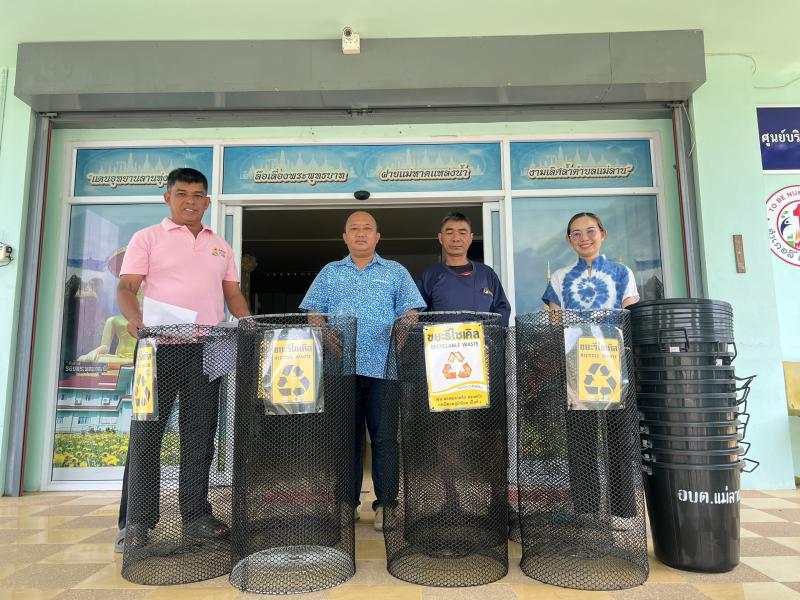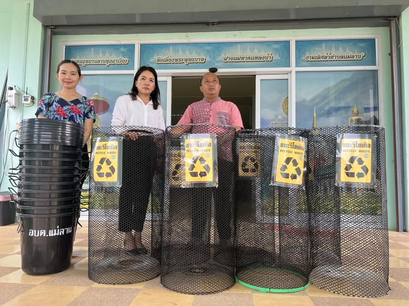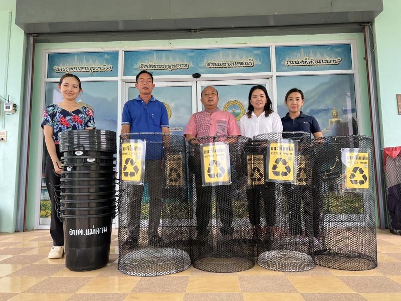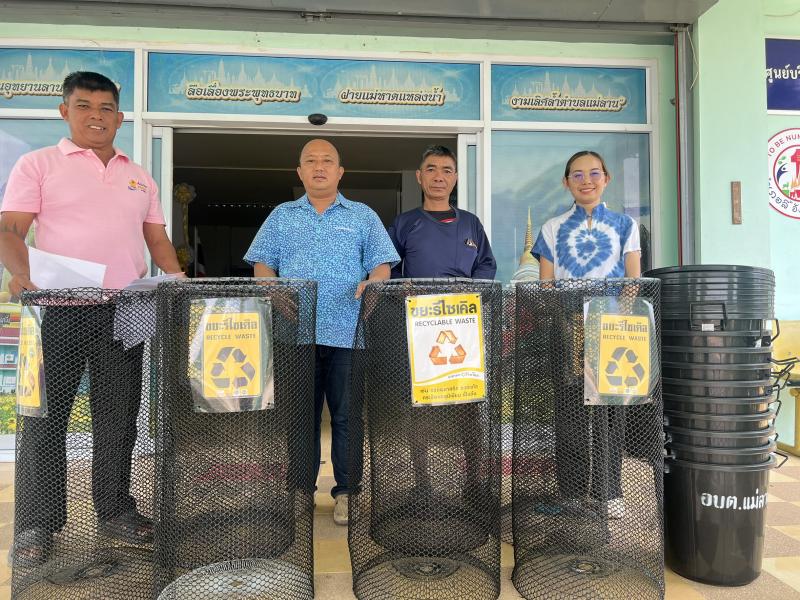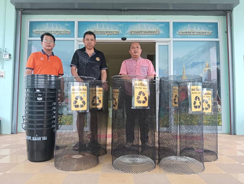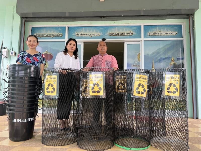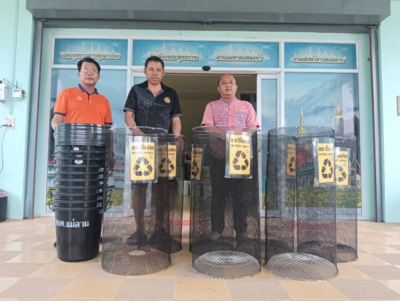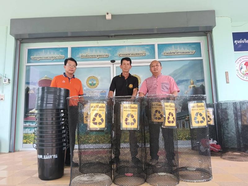 ดำเนินการมอบถังขยะเปียกลดโลกร้อน ละถังขยะรีไซเคิล ให้แก่ผู้นำชุมชน ทั้ง 7 หมู่บ้าน ในพื้นที่ตำบลแม่ลาน