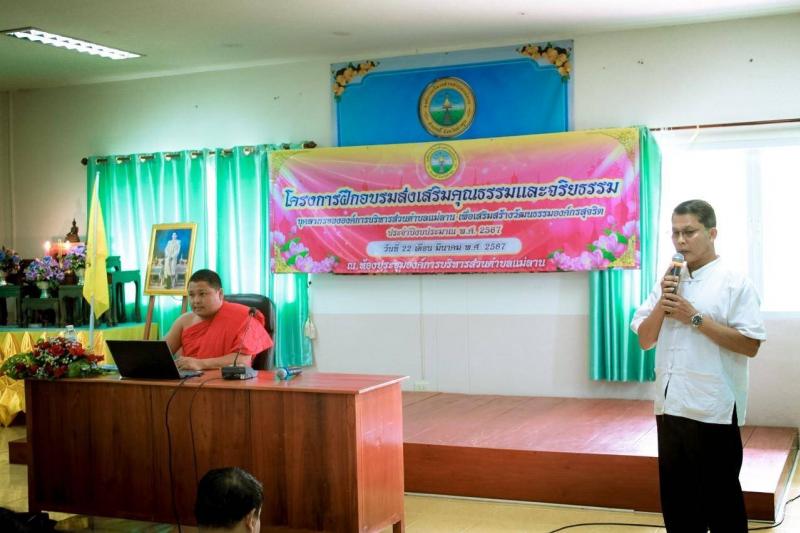 วันที่ 22 มีนาคม 2567 องค์การบริหารส่วนตำบลแม่ลาน โดย นายโสภณ มีมัง นายกองค์การบริหารส่วนตำบลแม่ลาน มอบหมายให้ นายเสาร์คำ แก้วปลูก รองนายกองค์การบริหารส่วนตำบลแม่ลาน พร้อมด้วยคณะผู้บริหาร สมาชิกสภาองค์การบริหารส่วนตำบลแม่ลาน ปลัดองค์การบริหารส่วนตำบลแม่ลาน หัวหน้าส่วนราชการ ข้าราชการ พนักงานและเจ้าหน้าที่องค์การบริหารส่วนตำบลแม่ลาน ได้จัดโครงการฝึกอบรมส่งเสริมคุณธรรมและจริยธรรม บุคลากรขององค์การบริหารส่วนตำบลแม่ลาน เพื่อเสริมสร้างวัฒนธรรมองค์กรสุจริต ประจำปีงบประมาณ พ.ศ.2567 โดยมี นายเสาร์คำ แก้วปลูก เป็นประธานในพิธีเปิดโครงการฯ และได้รับเกียรติจาก เจ้าอธิการอารักษ์ ญาณสัมปัญโญ เจ้าคณะตำบลแม่ลาน มาเป็นพระวิทยากรบรรยายให้ความรู้ ณ ห้องประชุมองค์การบริหารส่วนตำบลแม่ลาน ชั้น 2 อำเภอลี้ จังหวัดลำพูน