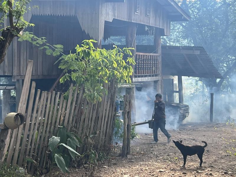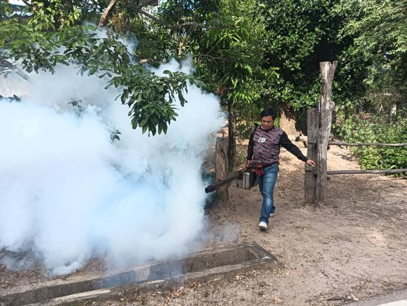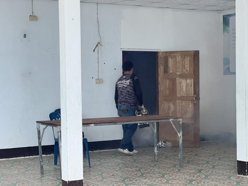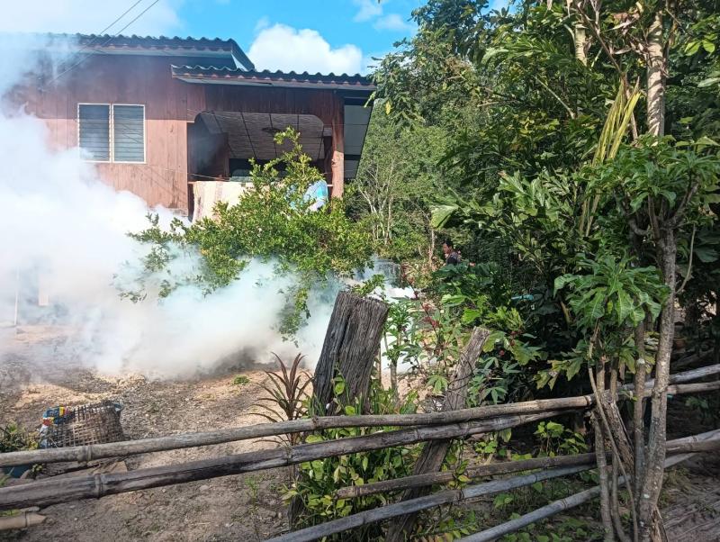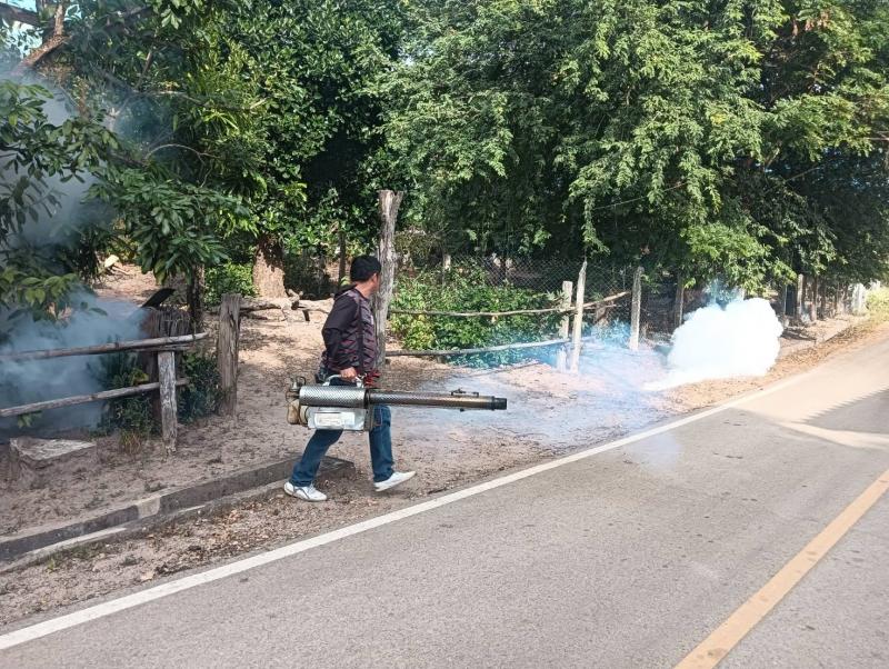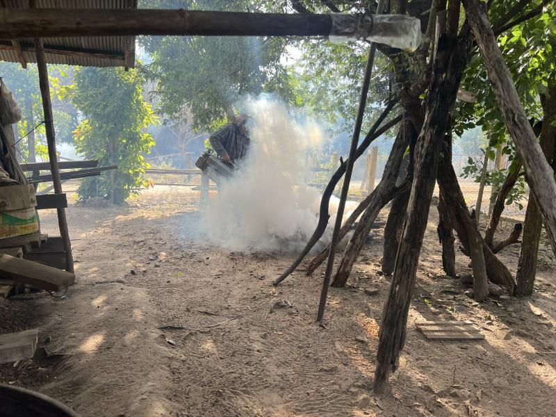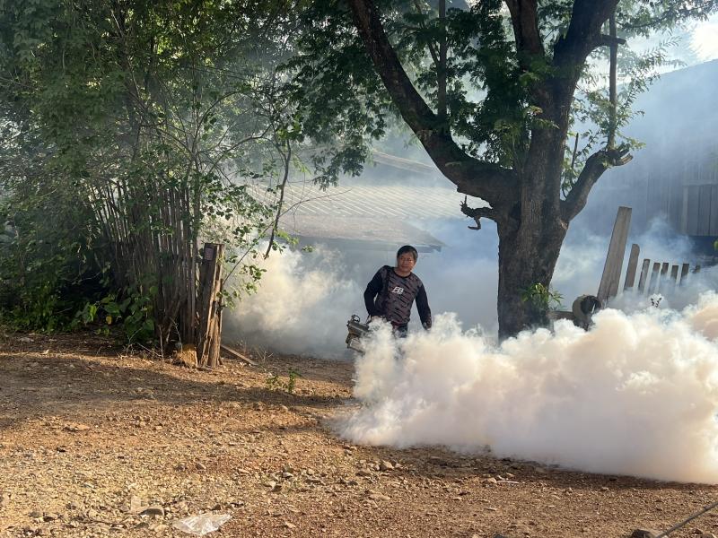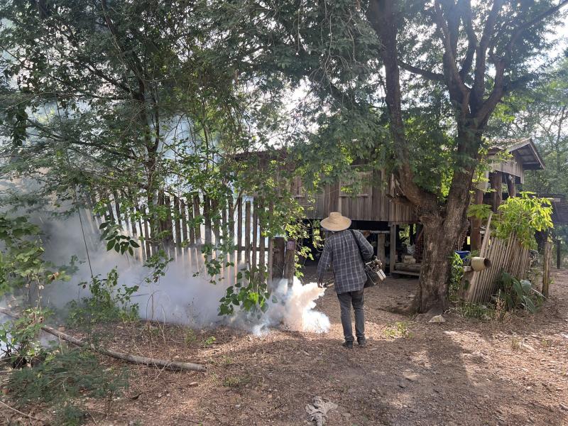 ลงพื้นที่ดำเนินการพ่นหมอกควัน และทำลายแหล่งเพาะพันธุ์ลูกน้ำยุงลาย เพื่อกำจัดยุงตัวแก่ และควบคุมป้องกันการระบาดของโรคไข้ปวดข้อยุงลาย (ชิคุนกุนยา) บริเวณบ้านผู้ป่วย บ้านห้วยทรายขาว หมู่ที่ 7 ตำบลแม่ลาน อำเภอลี้ จังหวัดลำพูน ระยะ 100 เมตร ครั้งที่ 3