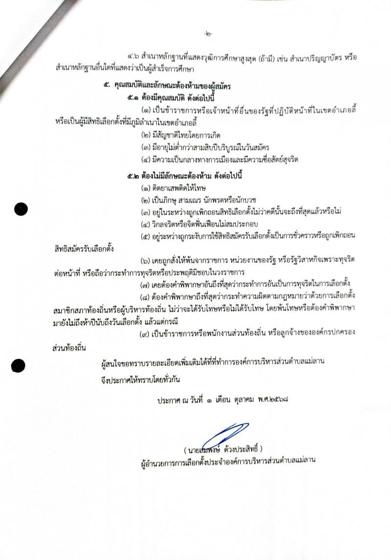 รายละเอียด : ประกาศผู้อำนวยการการเลือกตั้งประจำองค์การบริหารส่วนตำบตำบลแม่ลาน