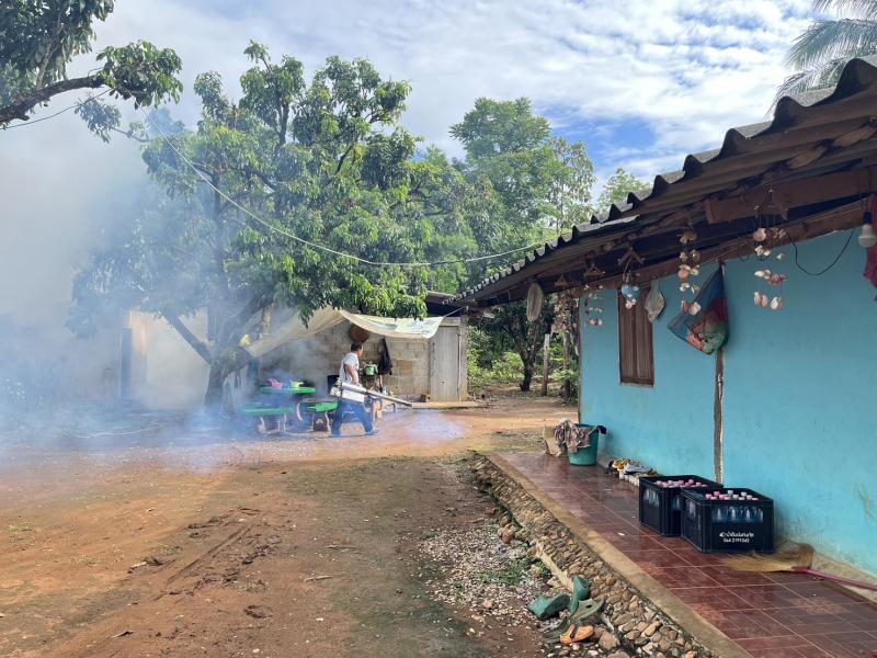 วันที่ 15 กันยายน 2566 องค์การบริหารส่วนตำบลแม่ลาน โดย นายโสภณ มีมัง นายกองค์การบริหารส่วนตำบลแม่ลาน มอบหมายให้ เจ้าหน้าที่องค์การบริหารส่วนตำบลแม่ลาน ลงพื้นที่ดำเนินการพ่นหมอกควัน เพื่อกำจัดยุงตัวแก่ และควบคุมการระบาดของโรคไข้เลือดออก บริเวณบ้านผู้ป่วย บ้านผาต้าย หมู่ที่ 1 ตำบลแม่ลาน อำเภอลี้ จังหวัดลำพูน ระยะ 100 เมตร ครั้งที่ 3 Day 7