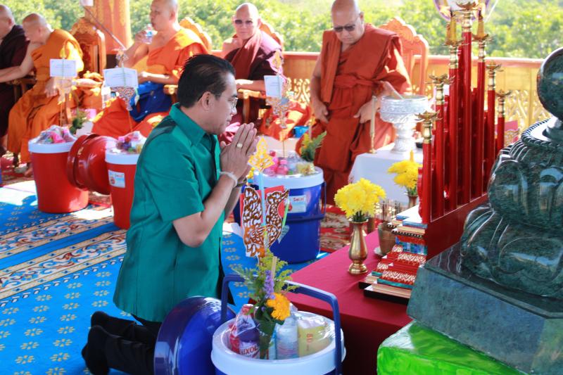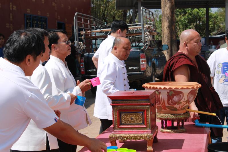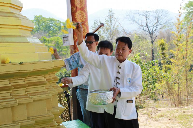 โดยมี นายสิริพล รักษนาเวศ ผู้อำนวยการกองพัฒนาแหล่งน้ำขนาดกลาง เป็นประธานในพิธีสรงน้ำพระธาตุและทอดผ้าป่า