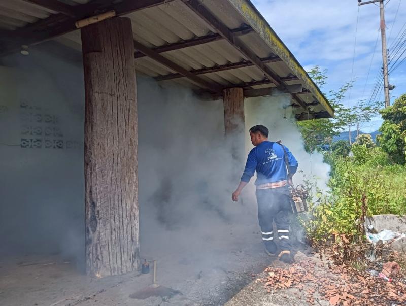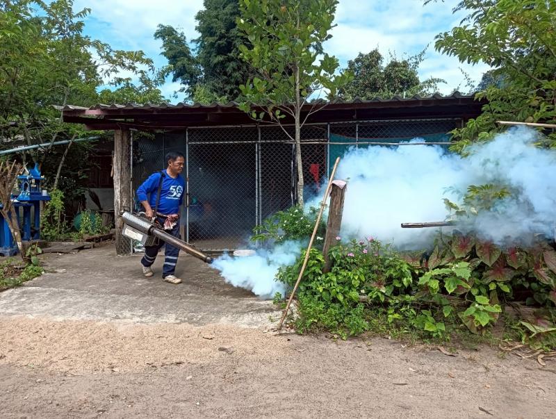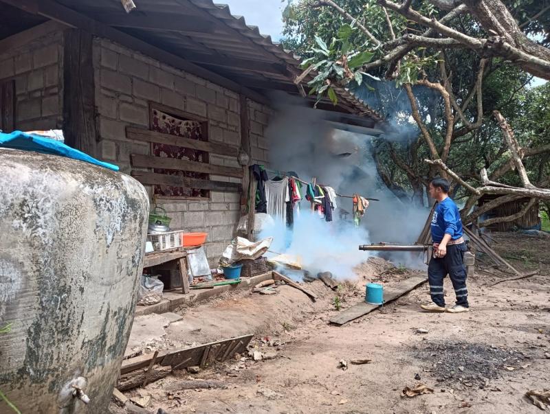 ลงพื้นที่ดำเนินการพ่นหมอกควัน และทำลายแหล่งเพาะพันธุ์ลูกน้ำยุงลาย เพื่อกำจัดยุงตัวแก่ และควบคุม ป้องกันการระบาดของโรคไข้มาลาเรีย (Malaria) บริเวณบ้านผู้ป่วย บ้านเด่นเหม้า หมู่ที่ 5 ตำบลแม่ลาน อำเภอลี้ จังหวัดลำพูน ระยะ 100 เมตร ครั้งที่ 1