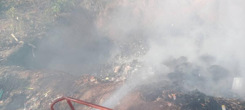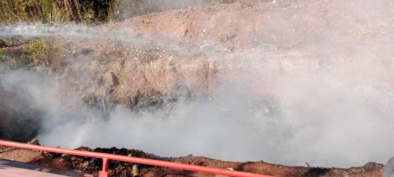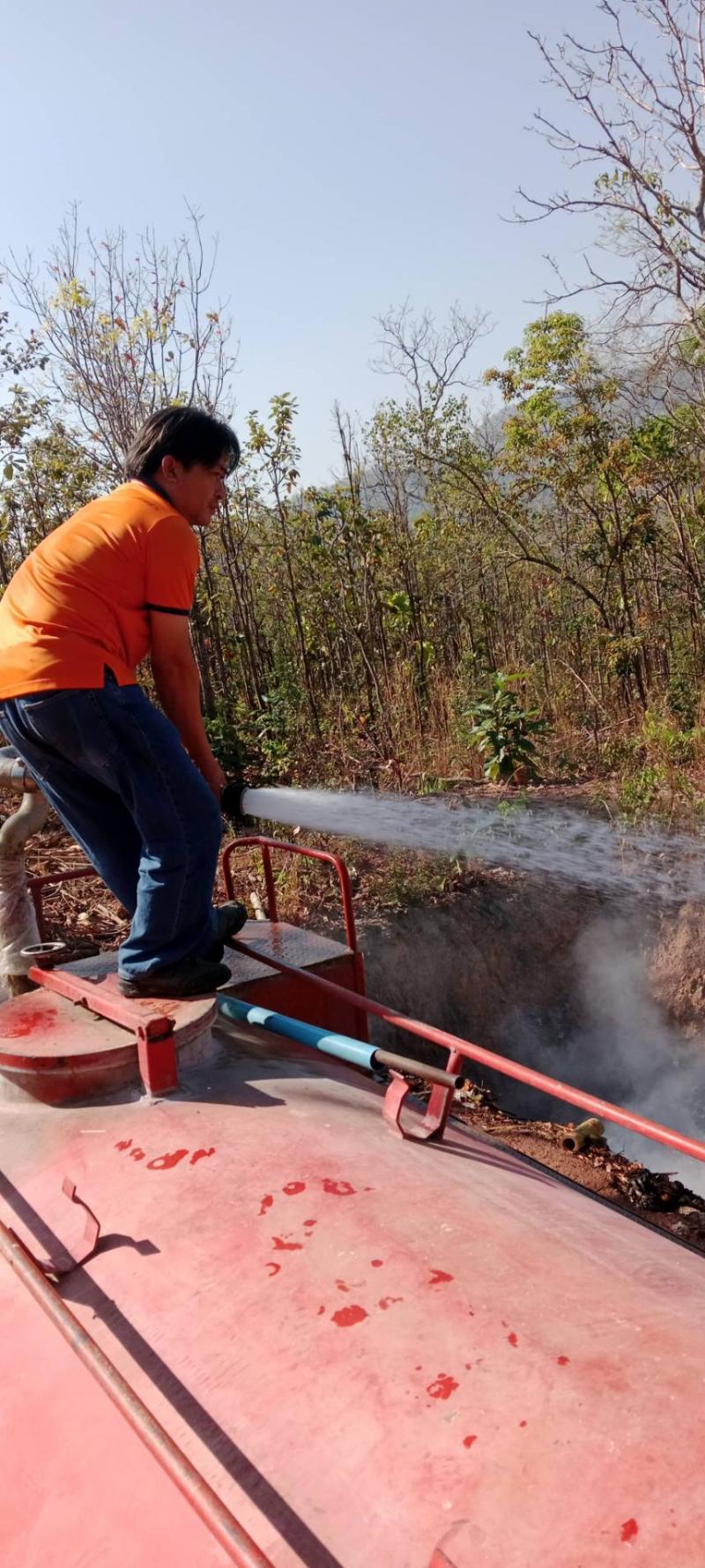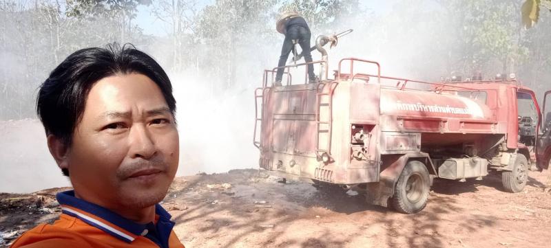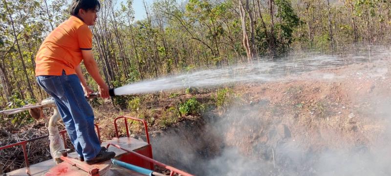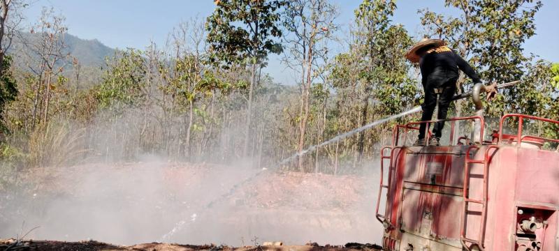 ลงพื้นที่นำรถบรรทุกน้ำดับไฟไหม้ บริเวณบ่อขยะบ้านผาต้าย หมู่ที่ 1 ตำบลแม่ลาน อำเภอลี้ จังหวัดลำพูน