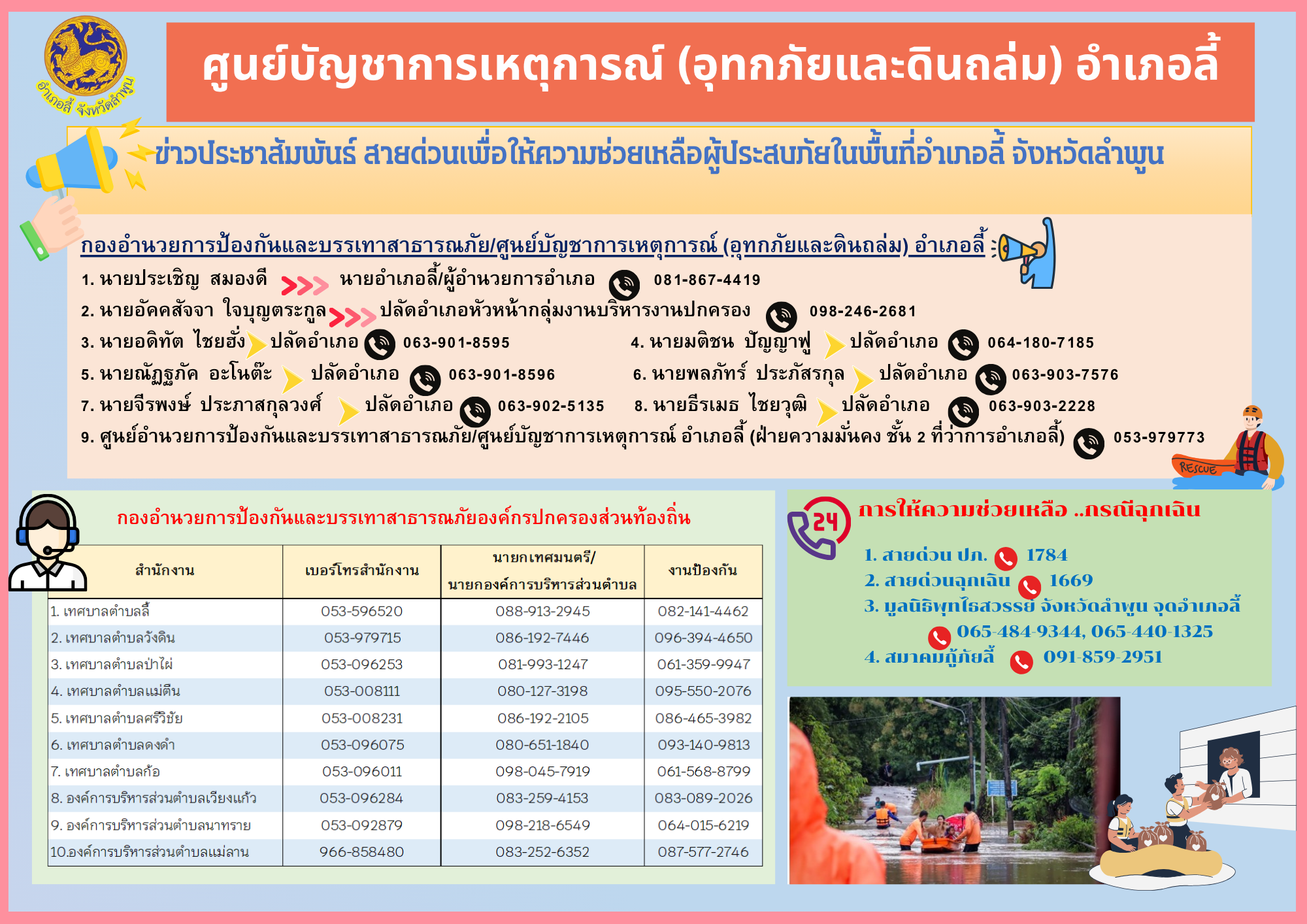 #สายด่วนเพื่อขอความช่วยเหลือเหตุอุทกภัย และดินถล่ม
