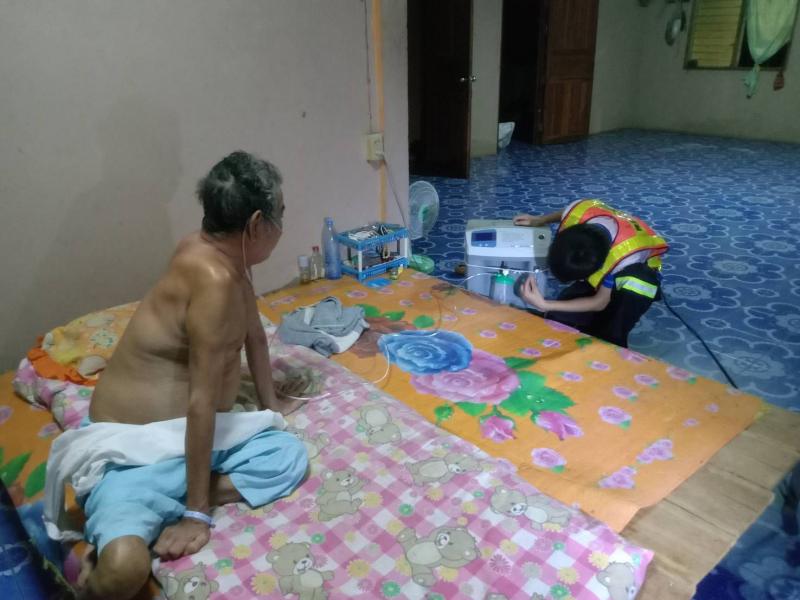 รับผู้ป่วยจากโรงพยาบาลลี้ อำเภอลี้ จังหวัดลำพูน กลับบ้าน บ้านบ้านเด่นเหม้า หมู่ที่ 5 ตำบลแม่ลาน อำเภอลี้ จังหวัดลำพูน เนื่องจากมีความจำเป็นต้องใช้ออกซิเจน