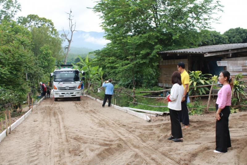 ลงพื้นที่ตรวจดูการดำเนินงาน โครงการก่อสร้างถนนคอนกรีตเสริมเหล็ก สายซอยบ้านนายวิชัย บ้านแม่กองวะ หมู่ที่ 4 อำเภอลี้ จังหวัดลำพูน
