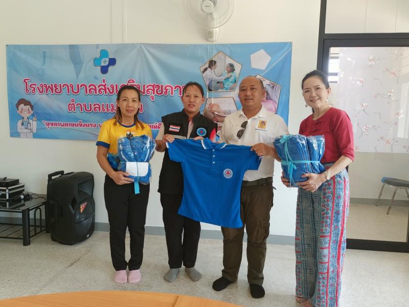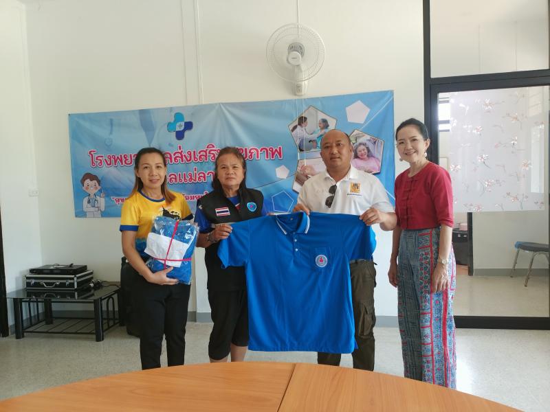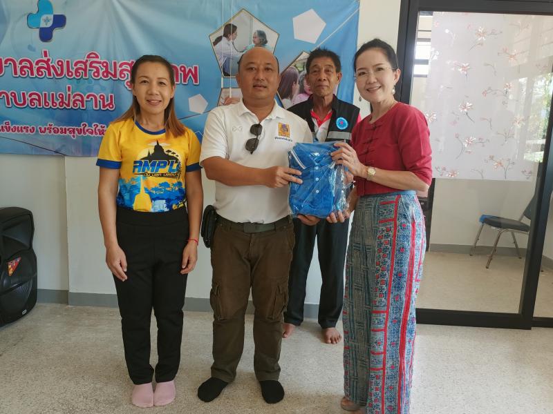 ลงพื้นที่มอบเสื้อสำหรับใช้ในการปฎิบัติงานให้กับเจ้าหน้าที่โรงพยาบาลส่งเสริมสุขภาพตำบล (รพ.สต.) ตำบลแม่ลาน และเจ้าหน้าที่อาสาสมัครสาธารณสุขประจำหมู่บ้าน (อสม.) ตำบลแม่ลาน โดยใช้งบประมาณส่วนตัว เพื่อสร้างความสามัคคี มีความเป็นน้ำหนึ่งใจเดียวกัน และสร้างขวัญกำลังใจในการปฏิบัติหน้าที่ในการดูแลสุขภาพในระดับชุมชนอย่างเข้มแข็ง ซึ่งเจ้าหน้าที่ รพ.สต. และ อสม. เป็นกำลังสำคัญในการเฝ้าระวังป้องกันโรคต่างๆ เช่น โรคไข้เลือดออก และการดูแลด้านอนามัยสิ่งแวดล้อมในชุมชน มีส่วนช่วยดูแลสุขภาพของชุมชน ซึ่งจะเป็นกำลังสำคัญในการขับเคลื่อนและการจัดการสุขภาพ สร้างการมีส่วนร่วมในชุมชนต่อไป