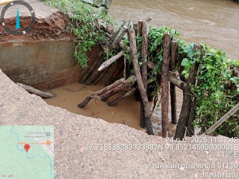วันที่ 24 กันยายน 2568 องค์การบริหารส่วนตำบลแม่ลาน โดย นายโสภณ มีมัง นายกองค์การบริหารส่วนตำบลแม่ลาน มอบหมายให้ นายสุริยา ปวรรณา เจ้าพนักงานป้องกันและสาธารณภัยฯองค์การบริหารส่วนตำบลแม่ลาน ร่วมกับ นายพลภัทร์ ประภัสระกูล ปลัดอำเภอลี้ พร้อมด้วย กำนันตำบลแม่ลาน ผู้ใหญ่บ้าน หมู่ที่ 3 และหมู่ที่ 7 ลงพื้นที่สำรวจความเสียหายจากอุทกภัย บริเวณถนนทางหลวงชนบทสาย ลพ 4038 บริเวณสะพานข้ามห้วยแม่ลาน บ้านแม่ลาน หมู่ที่ 3 ถนนชำรุด 1 ช่องทางจราจร และบริเวณสะพานข้ามห้วยแม่หาด บ้านห้วยทรายขาว หมู่ที่ 7 ตำบลแม่ลาน อำเภอลี้ จังหวัดลำพูน เนื่องจากมีฝนตกหนัก น้ำป่าไหลหลากในพื้นที่ตำบลแม่ลาน เพื่อดำเนินการแก้ไขปัญหาเบื้องต้นในช่วงฤดูฝน องค์การบริหารส่วนตำบลแม่ลาน จึงขอแจ้งเตือน ให้ประชาชนตำบลแม่ลานที่อยู่ใกล้แหล่งน้ำ พื้นที่ลาดเชิงเขาใกล้ทางน้ำไหลผ่านและพื้นที่ลุ่ม เฝ้าระวัง และติดตามข่าวสารหน่วยงานราชการ อย่างใกล้ชิด ________________________________________ -ขอขอบคุณภาพข่าวจาก : เจ้าพนักงานป้องกันและสาธารณภัยฯ องค์การบริหารส่วนตำบลแม่ลาน -เเหล่งข่าว : องค์การบริหารส่วนตำบลแม่ลาน -