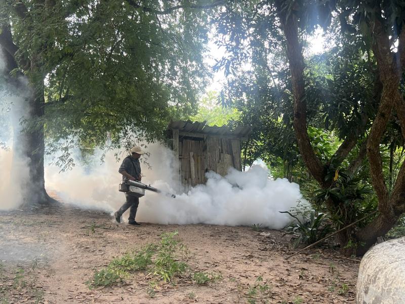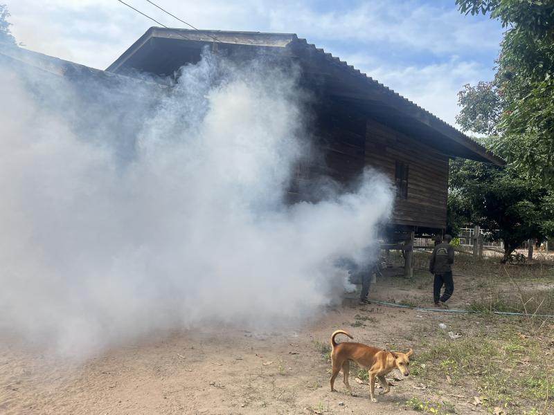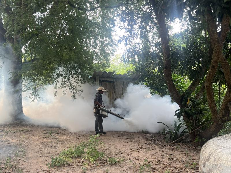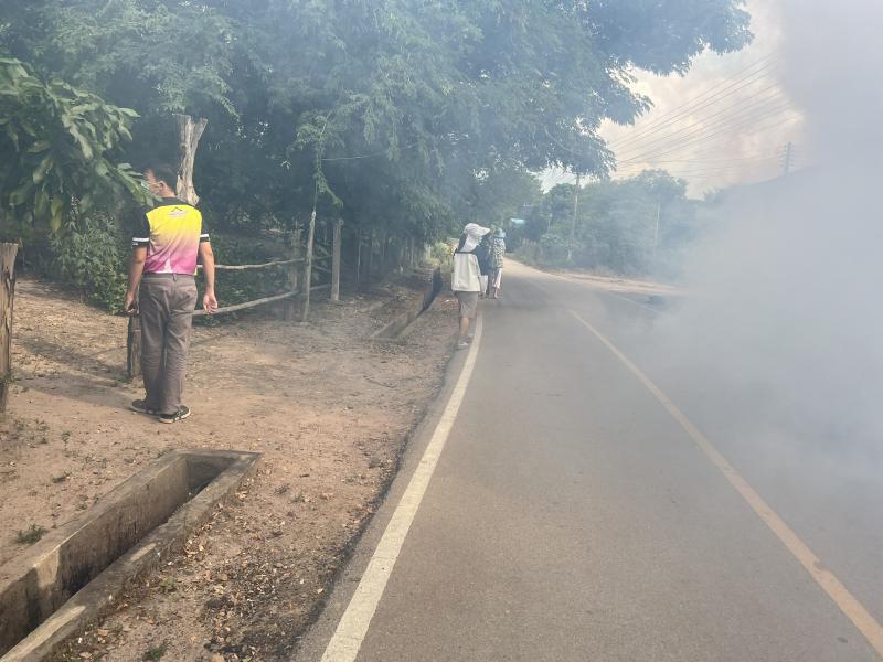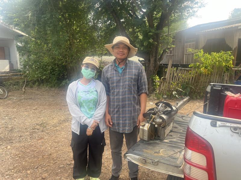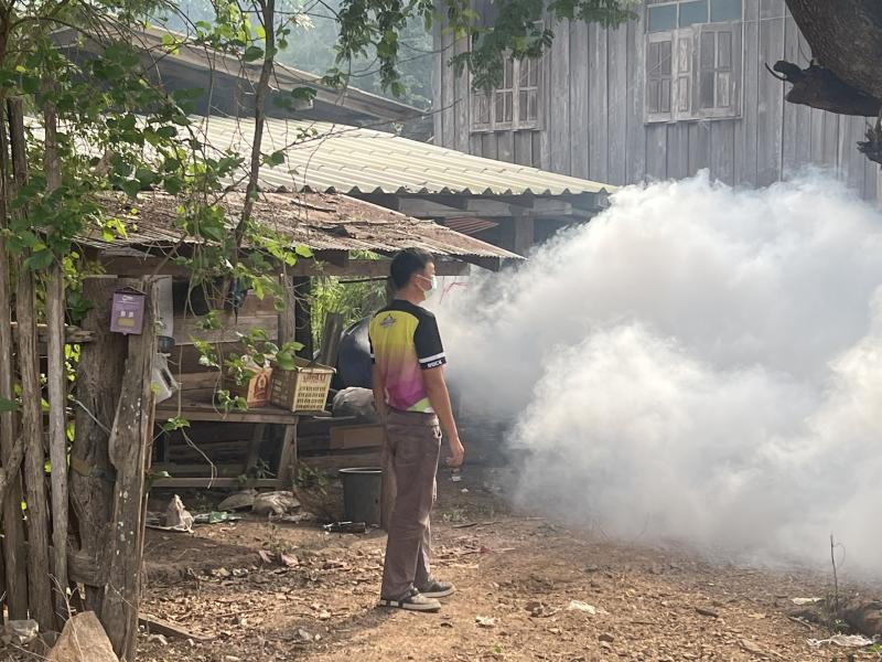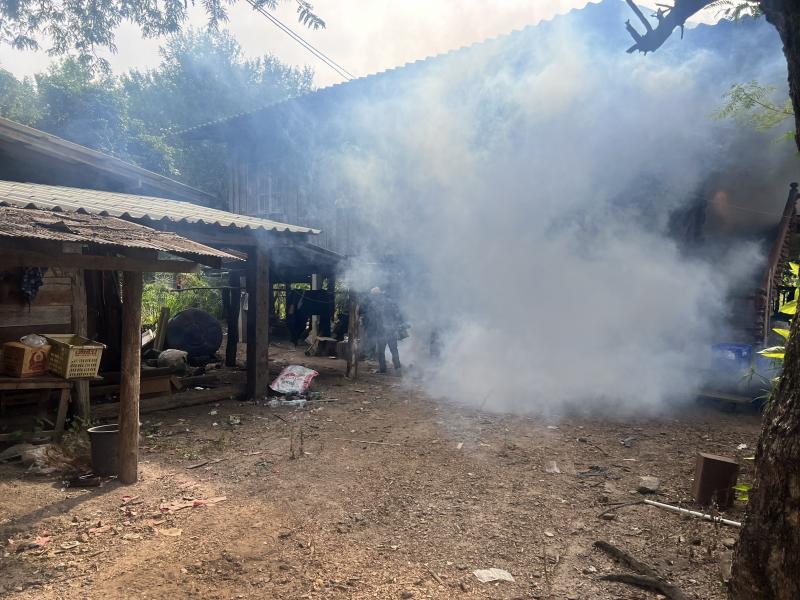 ลงพื้นที่ดำเนินการพ่นหมอกควัน และทำลายแหล่งเพาะพันธุ์ลูกน้ำยุงลาย เพื่อกำจัดยุงตัวแก่ และควบคุมป้องกันการระบาดของโรคไข้ปวดข้อยุงลาย (ชิคุนกุนยา) บริเวณบ้านผู้ป่วย บ้านห้วยทรายขาว หมู่ที่ 7 ตำบลแม่ลาน อำเภอลี้ จังหวัดลำพูน ระยะ 100 เมตร ครั้งที่ 1