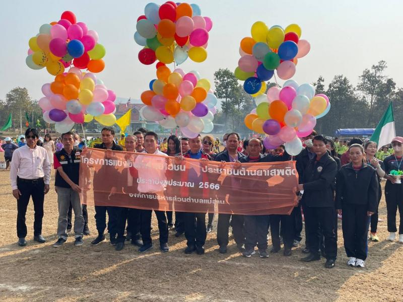 รายละเอียด : วันที่ 5 กุมภาพันธ์ 2566 องค์การบริหารส่วนตำบลแม่ลาน นำโดย นายโสภณ มีมัง นายกองค์การบริหารส่วนตำบลแม่ลาน พร้อมด้วยคณะผู้บริหาร สมาชิกสภาองค์การบริหารส่วนตำบลแม่ลาน พนักงานและเจ้าหน้าที่องค์การบริหารส่วนตำบลแม่ลาน ร่วมกับผู้นำชุมชน และประชาชนตำบลแม่ลาน ได้ดำเนินการจัดโครงการแข่งขันกีฬาเยาวชน ประชาชนต้านยาเสพติด (ผาเวียงเกมส์) ครั้งที่ 20 ประจำปีงบประมาณ พ.ศ.2566 เพื่อสนับสนุนให้เยาวชนตลอดจนประชาชนทั่วไปใช้เวลาว่างให้เกิดประโยชน์ ห่างไกลยาเสพติด มีความสามัคคีและเชื่อมสัมพันธ์ภายในชุมชน โดยมีนายวิวัฒน์ จันทร์โอภาส นายอำเภอลี้ เป็นประธานเปิดการแข่งขัน กีฬาเยาวชน ประชาชนต้านยาเสพติด (ผาเวียงเกมส์) ครั้งที่ 20 ประจำปีงบประมาณ พ.ศ.2566 และ มีฟุตบอลกระชับมิตร ระหว่างปกครองอำเภอลี้ และ องค์การบริหารส่วนตำบลแม่ลาน ณ สนามองค์การบริหารส่วนตำบลแม่ลาน