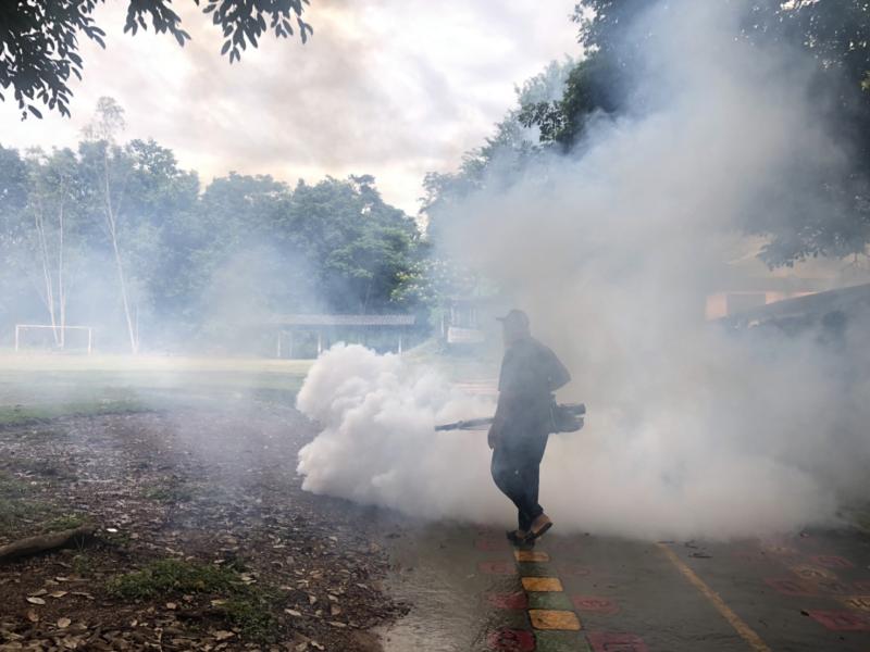 วันที่ 31 ตุลาคม 2566 องค์การบริหารส่วนตำบลแม่ลาน โดย นายโสภณ มีมัง นายกองค์การบริหารส่วนตำบลแม่ลาน มอบหมายให้ นายเอนก สีวิจี๋ ผู้ช่วยนักวิเคราะห์นโยบายและแผน และ นายเฉลิมพล อินต๊ะมัด พนักงานขับรถองค์การบริหารส่วนตำบลแม่ลาน ร่วมกับ รพ.สต.แม่ลาน และอสม.บ้านแม่กองวะ หมู่ที่ 4 ลงพื้นที่ดำเนินการพ่นหมอกควัน เพื่อกำจัดยุงตัวแก่ และควบคุมการระบาดของโรคไข้เลือดออก บริเวณบ้านผู้ป่วย และโรงเรียนบ้านแม่กองวะ หมู่ที่ 4 ตำบลแม่ลาน อำเภอลี้ จังหวัดลำพูน ระยะ 100 เมตร ครั้งที่ 3 Day 7