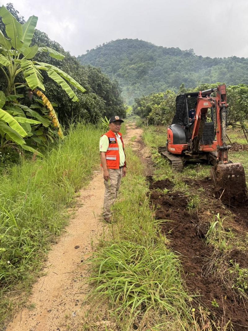 ลงพื้นที่ติดตามดูการดำเนินงาน การขุดร่องระบายน้ำ บริเวณถนนเพื่อการเกษตรสายถ้ำอิด บ้านผาต้ายเหนือ หมู่ที่ 6 ตำบลแม่ลาน อำเภอลี้ จังหวัดลำพูน เพื่อป้องกันน้ำกัดเซาะถนน คอนกรีต และแก้ไขปัญหาน้ำท่วมขัง ลดปัญหาน้ำเอ่อล้นเข้าท่วมพื้นที่การเกษตร
