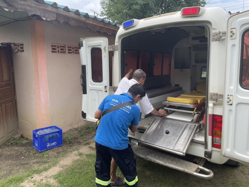 ออกเหตุรับผู้ป่วย บ้านเด่นเหม้า หมู่ที่ 5 ตำบลแม่ลาน มีอาการแน่นหน้าอก หายใจเหนื่อยหอบ นำตัวส่งโรงพยาบาลลี้ อำเภอลี้ จังหวัดลำพูน เพื่อทำการรักษาต่อไป